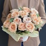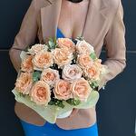 Хороший букетик, необычный, самый недорогой с розами. Внизу, вроде как, флористическая губка. Доставка отлично в срок.