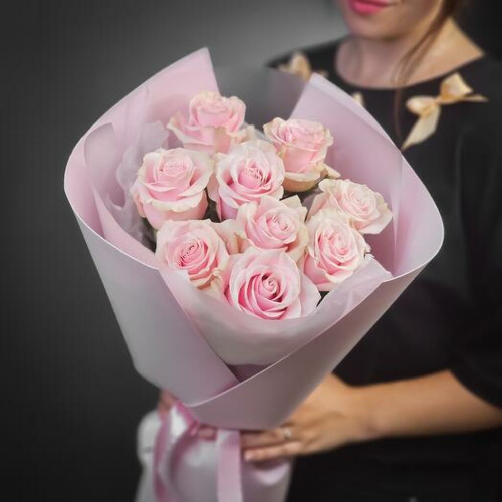 paketleme - 1 adet pembe gül - 9 adet