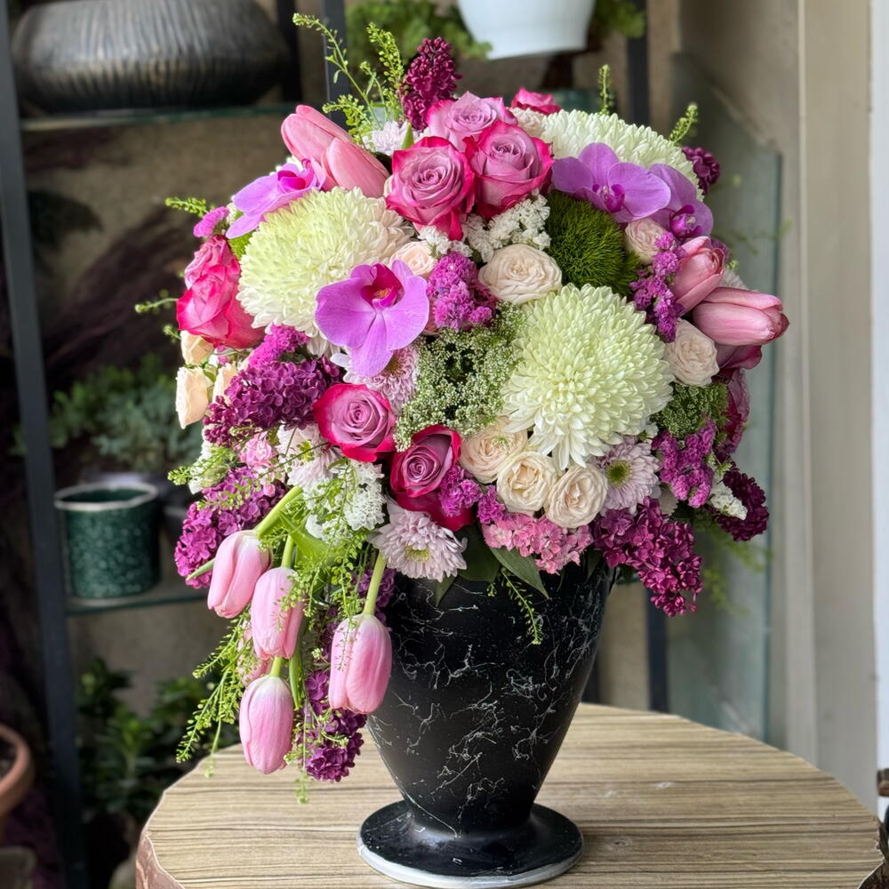 Bu olağanüstü çiçek aranjmanı, özenle seçilmiş 3 adet Anastasia, 15 adet göz alıcı gül, 9 adet baharın habercisi lale, 10 adet nefis sprey gül ve 15 adet mevsimlik çiçekten oluşmaktadır. İleri Çiçekçilik kategorisinde yer alan bu ürün, şıklığı ve tazelikle dolu çiçekleriyle her türlü özel anınızı daha da unutulmaz kılar. Her bir çiçek, ustaca bir araya getirilmiştir ve birlikte göz alıcı bir görsellik sunar.