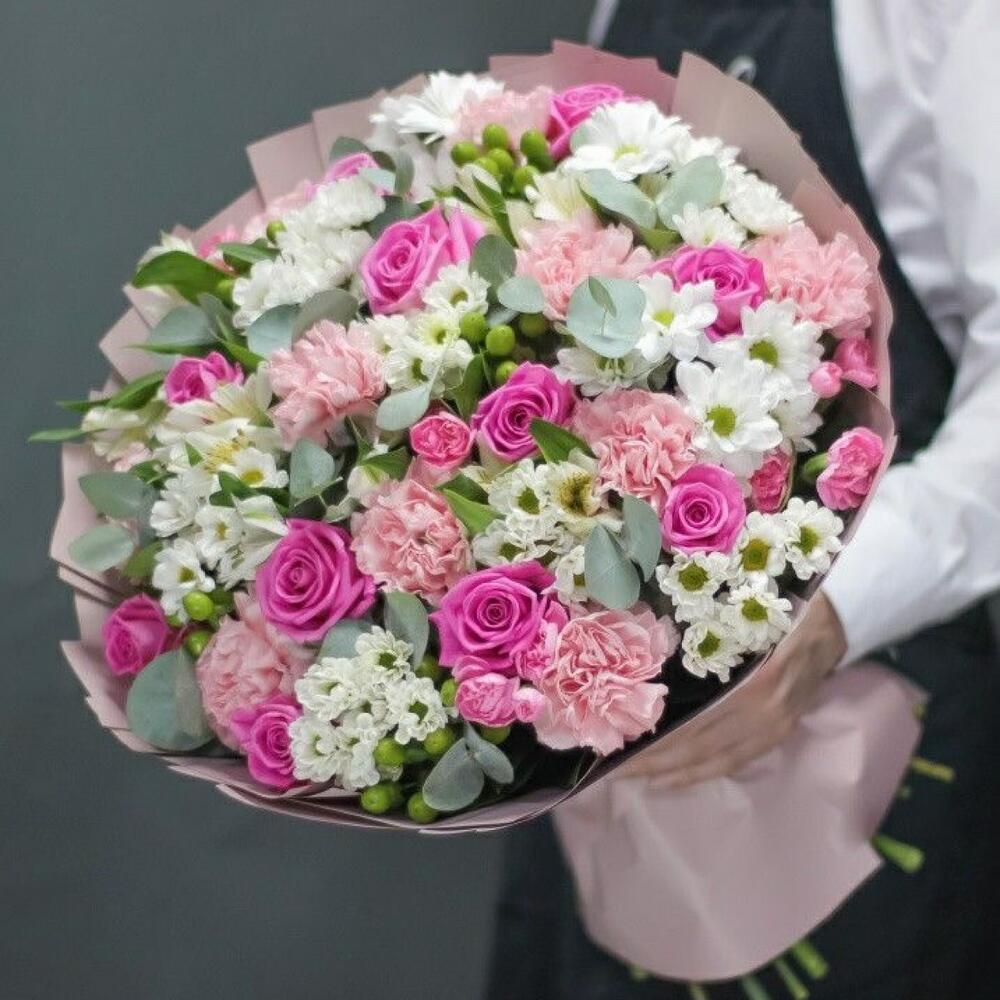 Букет отдаленно напоминает оригинал. Вместо красивого и гармоничного по расцветке букета был доставлен пестрый. Роз в нем существенно меньше, а гвоздик больше. Из плюсов упаковка и доставка. Не советую заказывать здесь букеты, если вам нужно соответствие. Мне было нужно