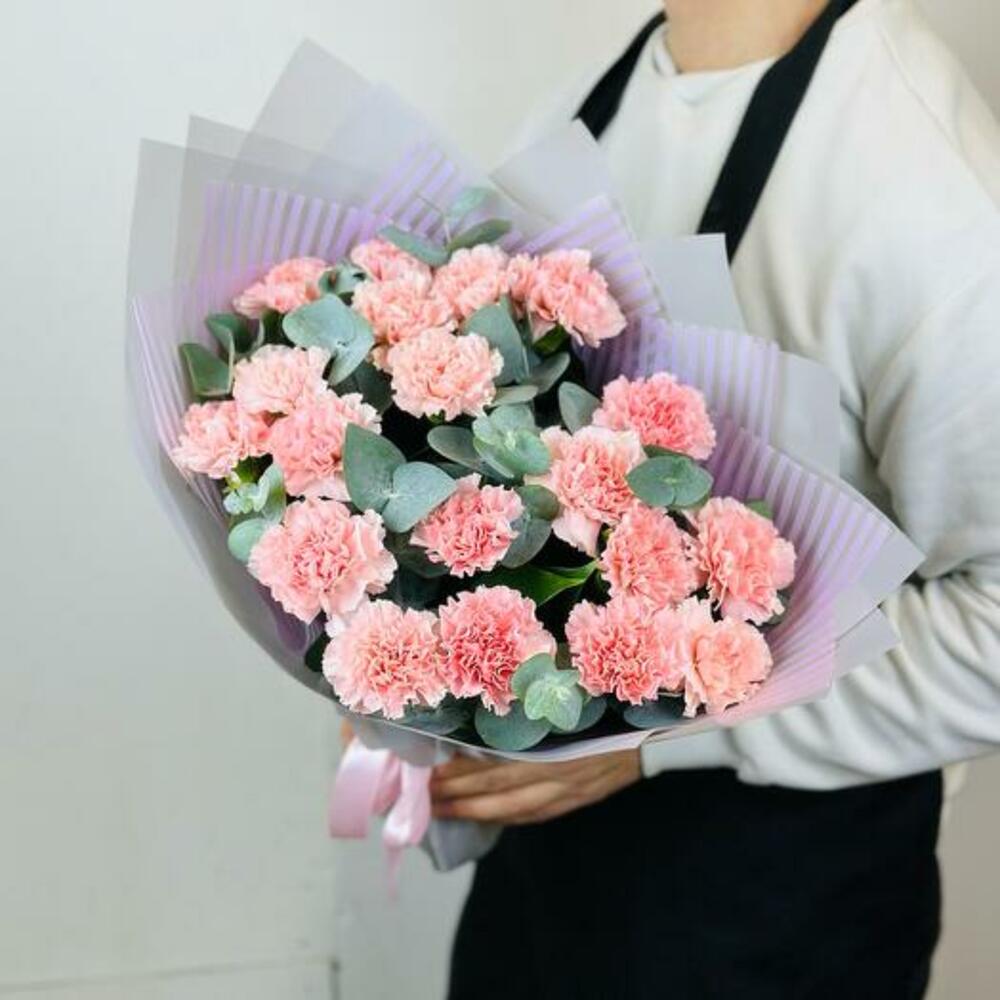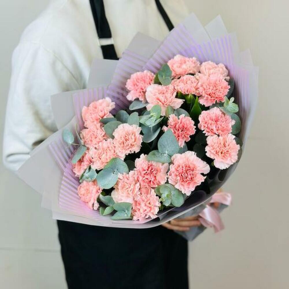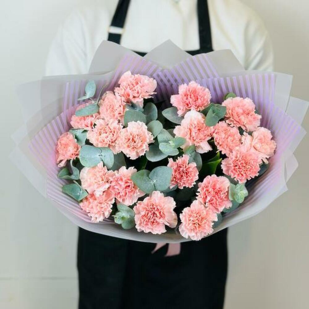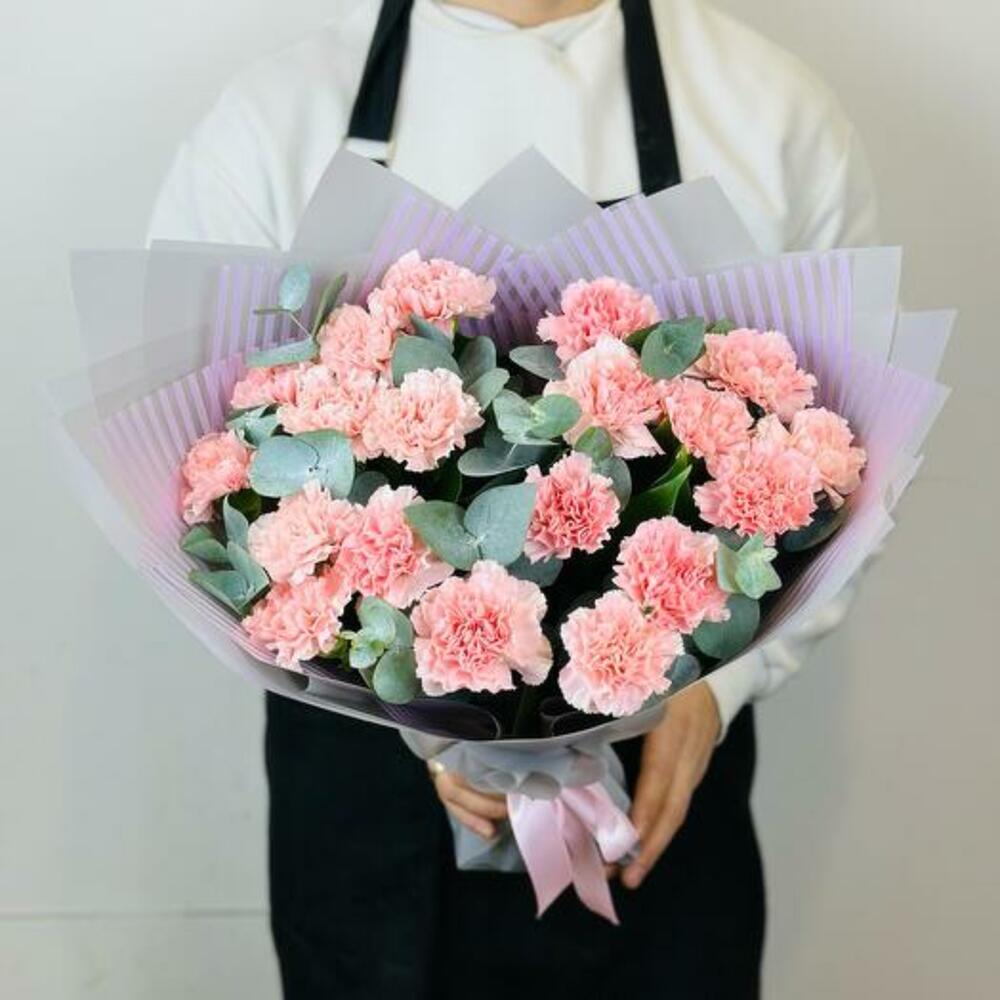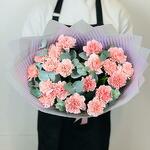 Yemyeşil okaliptüs yapraklarıyla güzel bir şekilde tamamlanan 19 narin pembe dianthus çiçeği içeren buketimizle zarafeti kucaklayın. Bu büyüleyici aranjman, sofistike ve doğal güzelliğin özünü yakalayarak her durum için mükemmel bir hediye haline geliyor. İster özel bir anı kutluyor ister birinin gününü aydınlatıyor olun, bu buket büyüleyici ve unutulmaz bir mesaj verir. Birinci sınıf kağıda ustalıkla sarılmış ve zarif bir kurdeleyle bağlanmış bu buket, doğanın en güzel çiçeklerinin zamansız cazibesinin bir kanıtıdır.