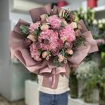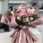Bu ürün, zarif bir sunumla birleştirilmiş çiçeklerin eşsiz bir kombinasyonudur. Pembe ortanca, 5 adetle buketimize renk katan ana çiçektir. Lila ve somon güller, toplamda 20 adet ile buketin hacmini artırıyor. 25 adet yeşillik ve cipso ise bu çiçek kompozisyonuna doğal güzellik ve tazelik katıyor. Bu özel çiçek buketi, sevdiklerinizin özel günlerini daha da anlamlı kılmak için mükemmel bir seçim olacaktır.