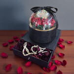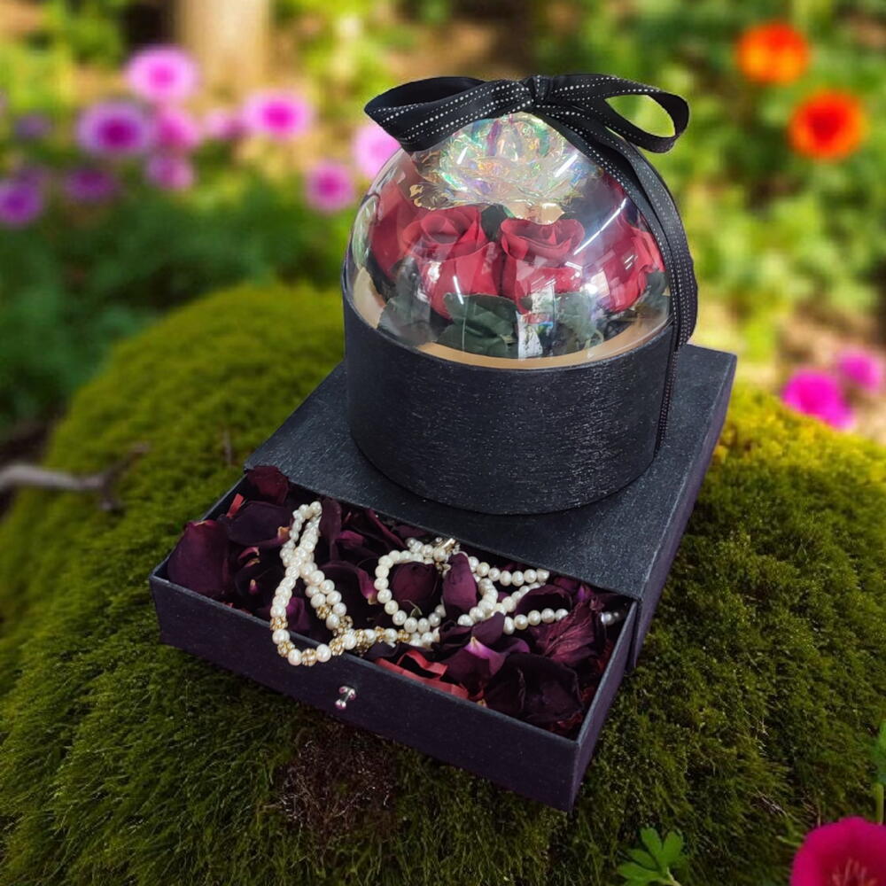 gül - 5 adet özel kumaş kaplı çekmeceli kutu - 1 adet sonsuz gül - 1 adet gül yaprakları - 41 adet