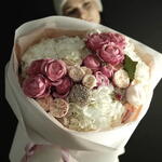 Çarpıcı bir görünüm isteyenler için tasarlanmış bu özel çiçek buketi; 3 adet royal blush rose, 3 adet silva pink, 3 adet ranunculus, 3 adet hydrangea ve 3 adet ozothamnustan oluşmaktadır. Eşsiz bir renk ve doku uyumu sunan bu çiçek buketi, sevdiklerinize ne kadar değerli ve önemli olduklarını hissettirmenin en zarif yolu olabilir.