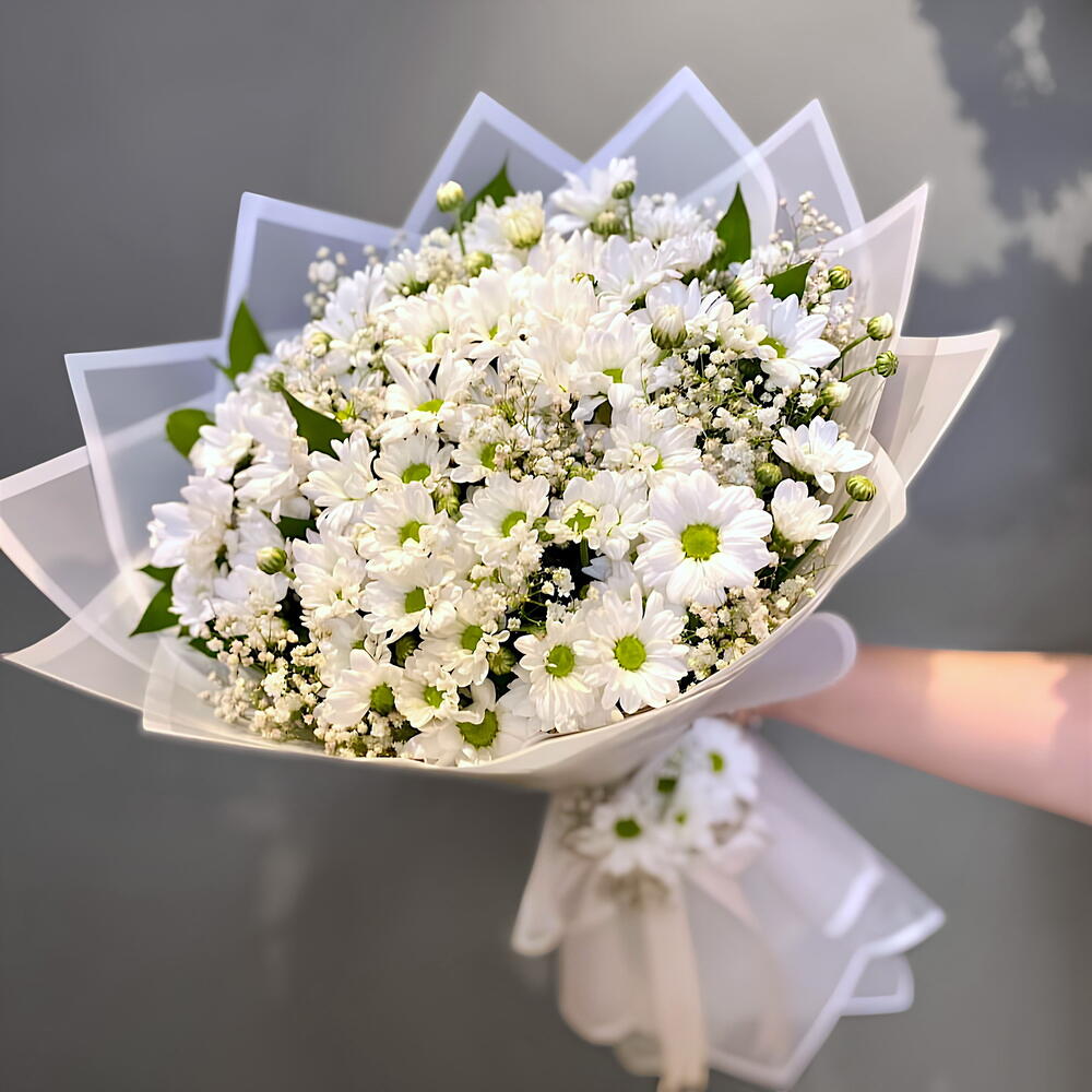 Bu göz alıcı monobuket, 35 ədəd tərlidən oluşmuş papatya və 5 ədəd cipso kombinasiyasıdır. Qalın və parlaq papatyaların bənzərsiz görkəmi, cipsoların çəhrayı güzəlliyi ilə birləşərək mükəmməl bir kompozisiya yaradır. Bu buket nəvə va nümunə göstərir. Papatyaların şöhrəti və cipsoların özünəməxsus hafifliyi ilə tətbiq olunan bu monobuket, sevdiklərinizə paylaşdığınız istəkləri, sevgiyi və səmимiliyi göstərmək üçün mükəmməl bir seçimdir. Bu monobuket, soyuq hava və doğal tazəlik hissi verən unudulmaz bir hədiyədir.