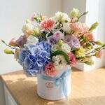 Anastasia çeşidi ile hayat bulan bu zarif kutuda çiçekler kompozisyonu, 3 adet mor lisyantus, 12 adet mor papatya, 5 adet mavi ortanca, 1 adet pembe lisyantüs ve 12 adet lila lisyantüs içerir. Dikkatlice seçilmiş ve hassasiyetle düzenlenmiş tüm çiçekler, bir sanat eserini andıran bu çarpıcı çiçek düzenlemesini oluşturur. Hediye, kutlamalar veya sadece kendinizi şımartmak için mükemmel.