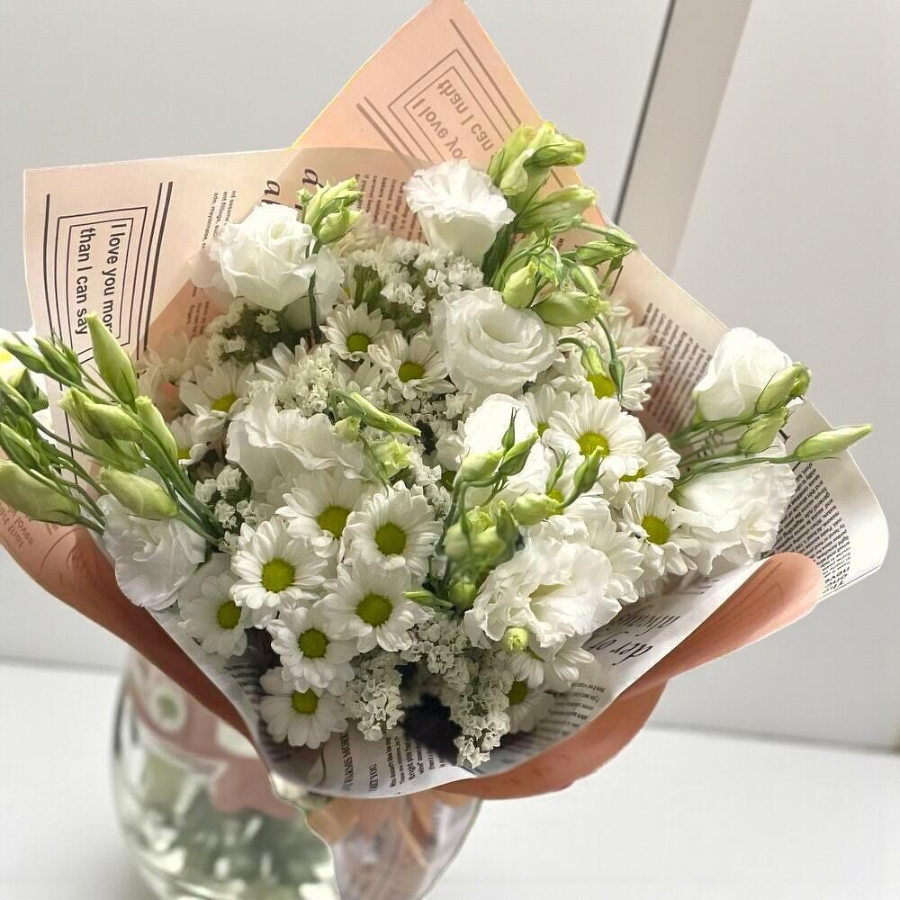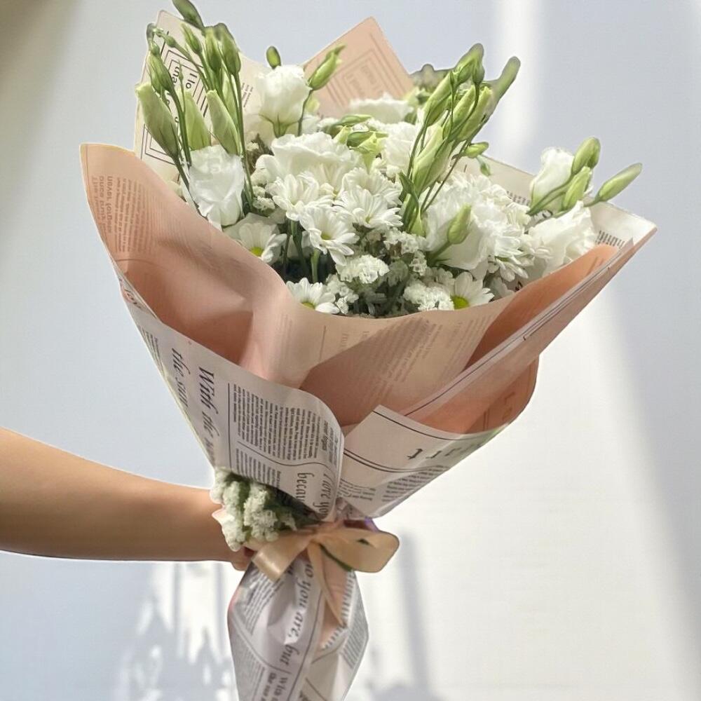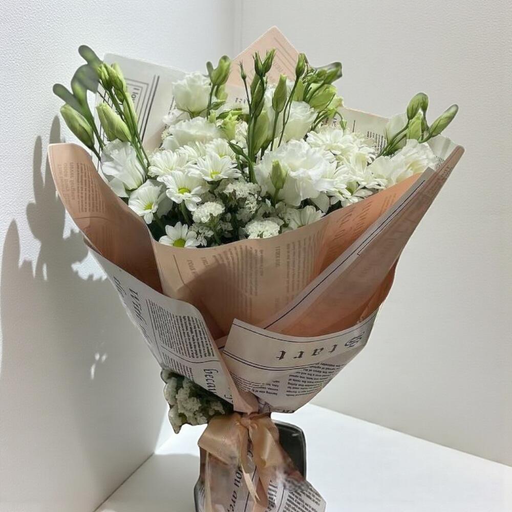 Beyazın büyüsüyle harmanlanmış papatya ve lisyantuslar, zarif bir uyum içinde statis çiçekleriyle tamamlanmıştır. Şık paketleme ve kurdele detayıyla sevdiklerinizi mutlu etmek veya özel bir gününüzü taçlandırmak için ideal bir seçim. Bu doğal ve taze görünüm, her türlü kutlama için mükemmel bir hediye olacaktır. Bakım Önerileri: Çiçeklerinizin daha uzun süre canlı kalması için serin bir ortamda muhafaza ediniz ve doğrudan güneş ışığına maruz bırakmayınız. Vazoya temiz su ekleyerek, iki günde bir suyu yenilemeyi unutmayınız. Çiçek saplarını çapraz şekilde keserek, suyun daha iyi emilmesini sağlayabilirsiniz. Taze görünüm için vazoyu hava akımlarından uzak tutunuz.