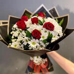 kırmızı gül - 6 adet papatya - 9 adet ambalaj - 3 adet
