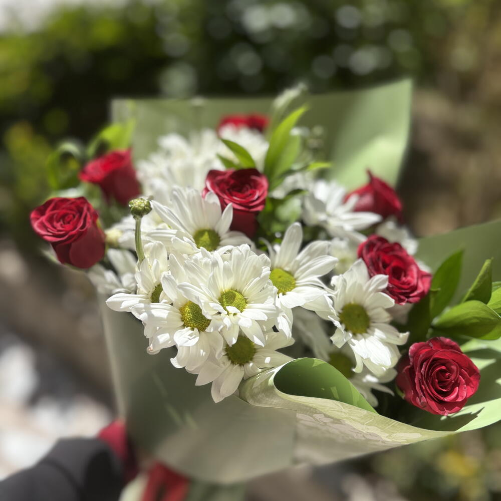 Kırmızı güllerin tutkulu enerjisiyle, papatyaların sade zarafetini bir araya getiren bu özel buket; aşkı, samimiyeti ve içten duyguları ifade etmenin en zarif yoludur. Sevgiliye, eşe, anneye ya da özel bir güne anlam katmak isteyenler için mükemmel bir seçimdir. Her biri özenle seçilen taze kırmızı güller ve beyaz papatyalar, zarif bir ambalajla birleştirilir. Doğum günü, yıldönümü, söz veya nişan gibi özel günlerde sevdiğinizi mutlu etmek için idealdir. 💌 Anlamı: Kırmızı gül – tutku ve aşkı, papatya – masumiyet ve sadakati temsil eder. 🎁 Kullanım: Söz, nişan, doğum günü, Sevgililer Günü veya “seni seviyorum” demenin en şık yolu.