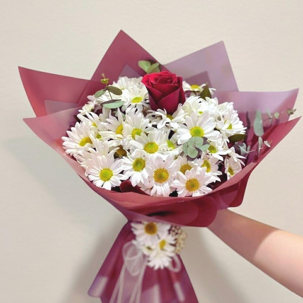 Papatya ve Kırmızı Gul Buketi