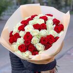 Bu olağanüstü çiçek buketi; 25 adet kırmızı gülün aşk ve tutkuyu, 25 adet beyaz gülün ise masumiyet ve saflığı temsil ettiği büyüleyici bir uyum sunar. Bu özel ve göz alıcı buket, sevdiklerinize ne kadar değer verdiğinizi anlatmanın en güzel yolu olacaktır. Her bir gül, kalite ve zarafeti temsil ederken, buketin tamamı unutulmaz bir izlenimin garantisi.