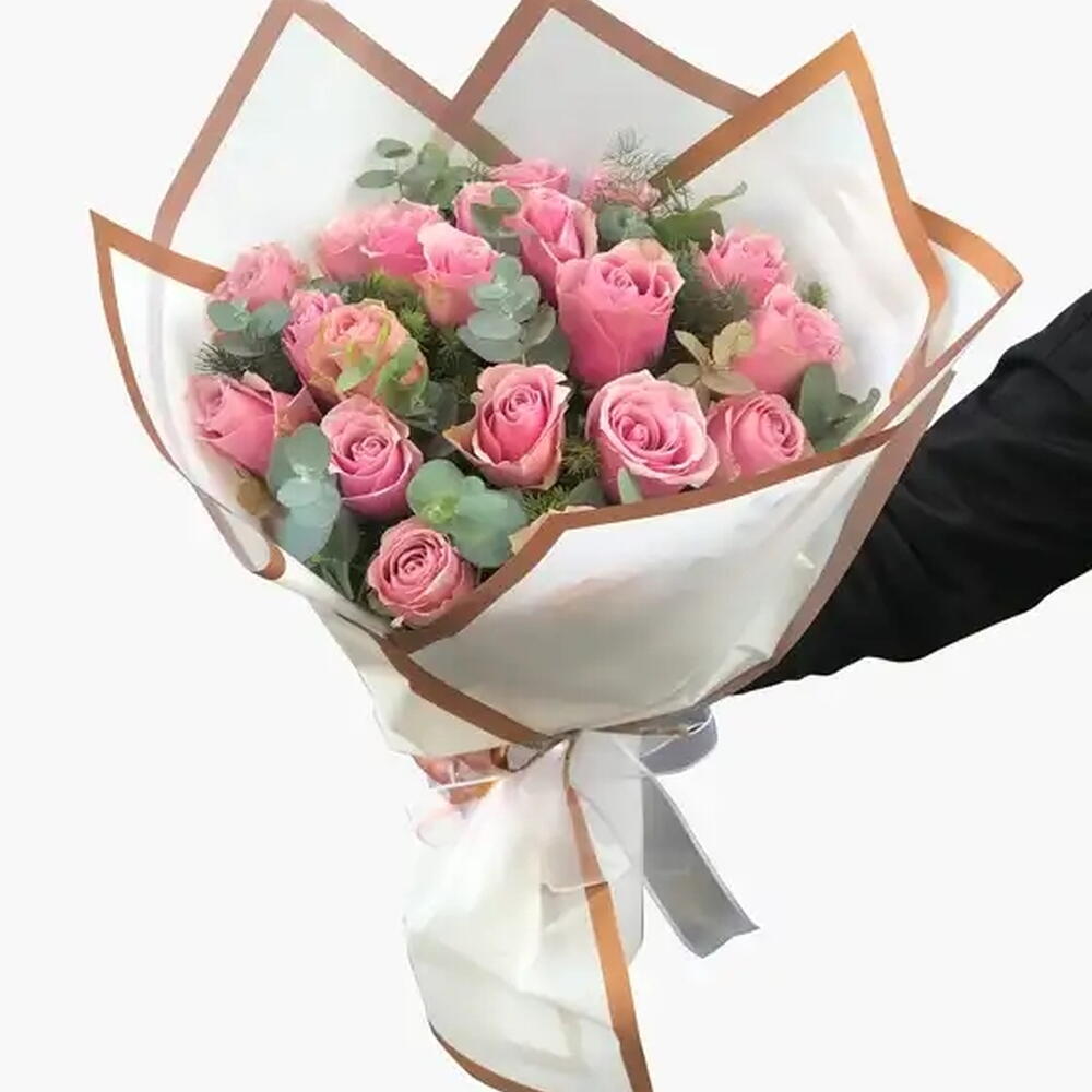 Bu zarif çiçek buketi, 20 adet parlak pembe gül ve 7 adet ferahlatıcı okaliptüs içerir. Sade ama şık bu buket, herhangi bir özel etkinliği kutlamak veya sevdiklerinize ne kadar özel olduklarını göstermek için mükemmel bir seçimdir. Hoş ambiansı ile göz alıcı pembe güller, tazeliği temsil eden okaliptüs ile harmonik bir şekilde birleşiyor. İster bir doğum günü, ister bir yıldönümü hediyesi olsun, ister sadece bir günü daha özel kılmak için, bu çiçek buketi mükemmel bir seçimdir.