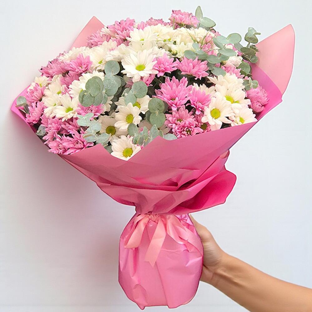 Beyaz ve pembe papatyaların enfes uyumunu sergileyen bu sepet çiçekler, evinize ya da ofisinize doğal ve romantik bir dokunuş katar. İçerisinde 5 adet beyaz ve 5 adet pembe papatya ile dizayn edilen çiçek aranjmanı, özel üç adet ambalajı ile birlikte sunulmaktadır. Taze ve canlı bu çiçekler, doğanın güzelliğini ve huzurunu mekanlara taşıyacak.