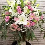Pembe Beyaz Şöleni Zarafetin ve romantizmin buluştuğu bu özel aranjman; beyaz lilyumlar, pembe lisyantuslar, pembe gerberalar ve cipso çiçekleriyle hazırlanmıştır. Cam vazosunda, dekoratif taşlarla tamamlanan bu şık tasarım; düğün, açılış, doğum günü veya tebrik gibi özel anlar için mükemmel bir hediye seçeneğidir.