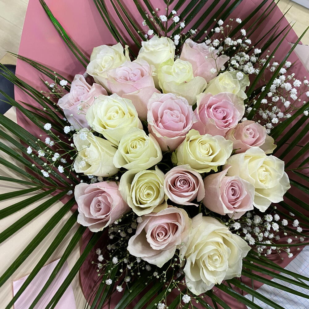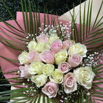 Bu özel Karışık Buket, zarafeti ve güzelliği temsil eden 11 adet pembe gül ve 10 adet beyaz gülle hazırlanmıştır. Sade ve şık bir görünüm sağlamak için 3 adet cipso ve 4 adet palm yaprağı buketimize çarpıcı bir dokunuş eklemektedir. Kendinize veya sevdiklerinize bu mükemmel buketle bir haz hediye edin ve herhangi bir özel günü unutulmaz kılın.
