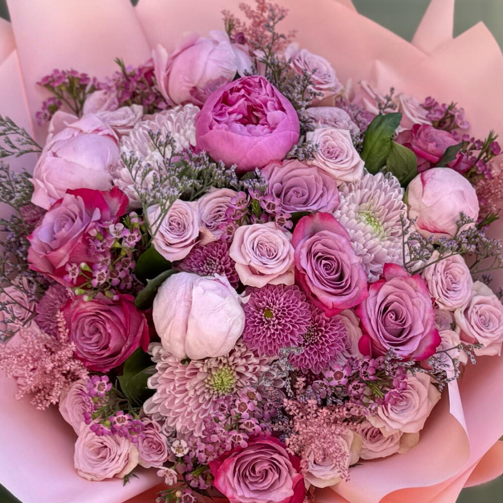 Pembe’nin asil güzelliği ve şakayığın zarif ihtişamı bu özel bukette bir araya geliyor. Pembe tonlarda krisantemler, zarif şakayıklar ve uyumlu tamamlayıcı çiçeklerle hazırlanan pembe mor Zarafet Buketi, ihtişamlı görüntüsüyle dikkat çekiyor. Sevdiklerinize romantik bir sürpriz yapmak, özel günleri unutulmaz kılmak ya da sadece içinizden geldiği için çiçek göndermek istediğinizde en şık tercihlerden biridir. Göz alıcı pembe ambalajı ve özenli tasarımıyla bu buket, hem modern hem de romantik bir çiçek aranjmanı arayanlar için kusursuz bir seçimdir.