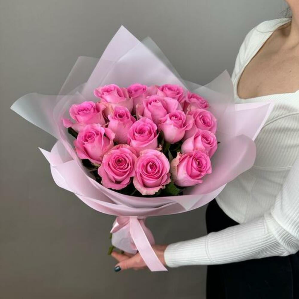 Birinin gününü 15 canlı pembe gül içeren çarpıcı buketimizle aydınlatın. Her bir gül mükemmel çiçekleri ve yoğun renkleri için özenle seçilmiştir ve muhteşem bir zarafet ve çekicilik gösterisi yaratır. Zengin pembe yaprakları hayranlık ve neşeyi sembolize eder ve bu buketi her özel gün için mükemmel bir hediye haline getirir.