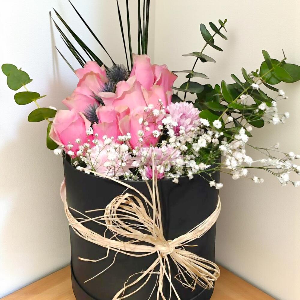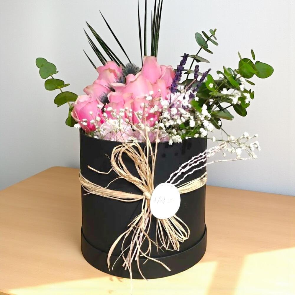 Muhteşem bir sürpriz yapmanın en güzel yolu! Bu kutuda çiçekler, 11 adet nazik pembe gülden, zarif siyah bir kutuda sunulmaktadır. Aranjmanı daha da zengin hale getiren 5 adet cipsofilya çiçeği ve sofistike bir dokunuş sağlayan 5 adet okaliptus yaprağıyla tamamlanmıştır. Romantik anılarınıza romantizm katacak bu çiçek kutusu; sevgililer günü, yıldönümü ya da sadece sevdiklerinize ne kadar değer verdiğinizi göstermek için mükemmel bir seçimdir. Bakım Önerileri: Bu özel çiçek kutusunun uzun ömürlü olması için doğrudan güneş ışığından uzak tutulmalı ve serin bir ortamda muhafaza edilmelidir. Haftada bir kez çiçekler hafif nemlendirilerek tazelikleri korunabilir.