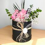 pembe gül - 11 adet siyah kutu - 1 adet cipsofilya çiçeği - 5 adet okaliptus yaprağı - 5 adet