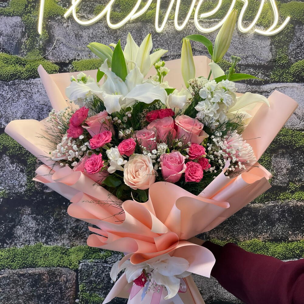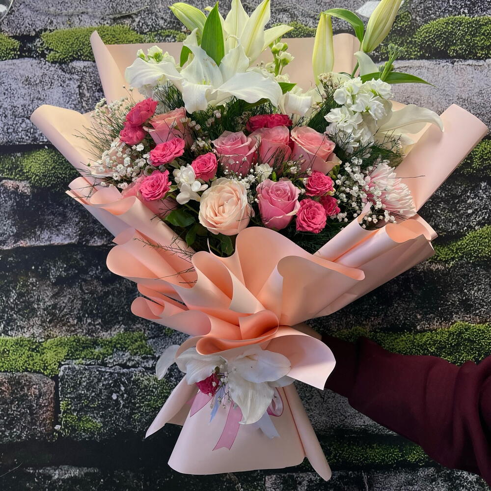 Pembe Gul Lilyum Buketi