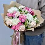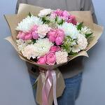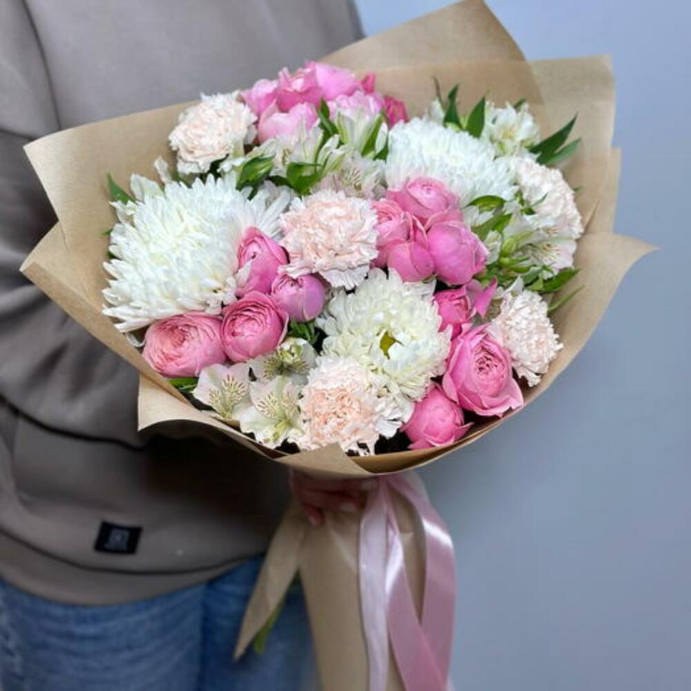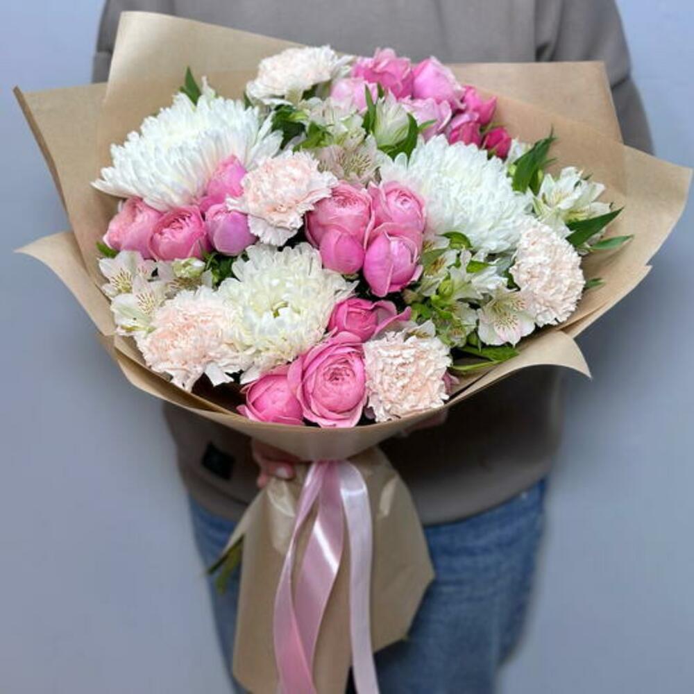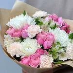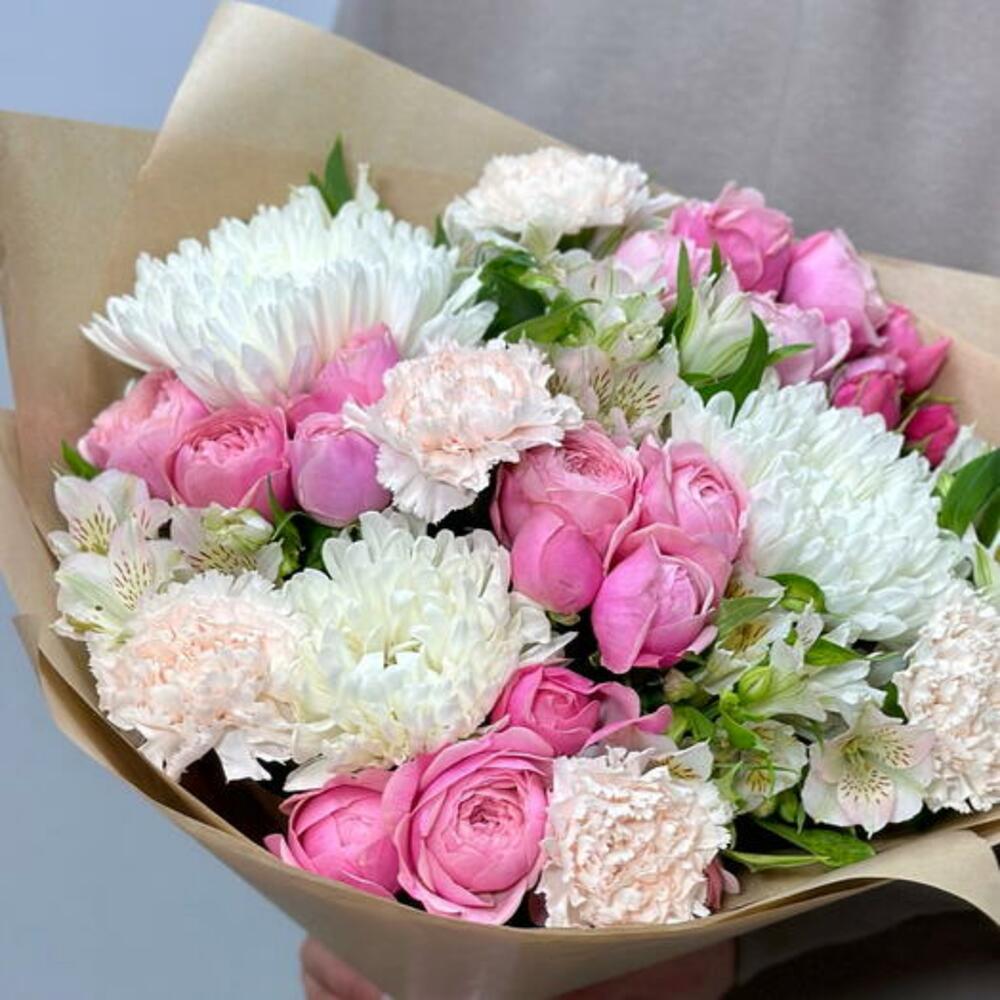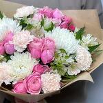 Pembe Guller ve Beyaz Krizantemlerden Oluşan Zarif Karışık Buket