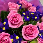Pembe güller ve canlı mor süsenlerin çarpıcı bir kombinasyonunu içeren buketimizle aşkı ve zarafeti kutlayın. Narin, al renkli güller hayranlık ve zarafeti simgelerken, süsenlerin cesur, zengin tonları sofistike ve gizemli bir dokunuş katıyor. Yıldönümleri, romantik jestler veya herhangi bir özel gün için mükemmel olan bu buket, klasik güzelliği çarpıcı kontrastla harmanlayarak kalpten gelen büyüleyici ve unutulmaz bir hediye yaratır.