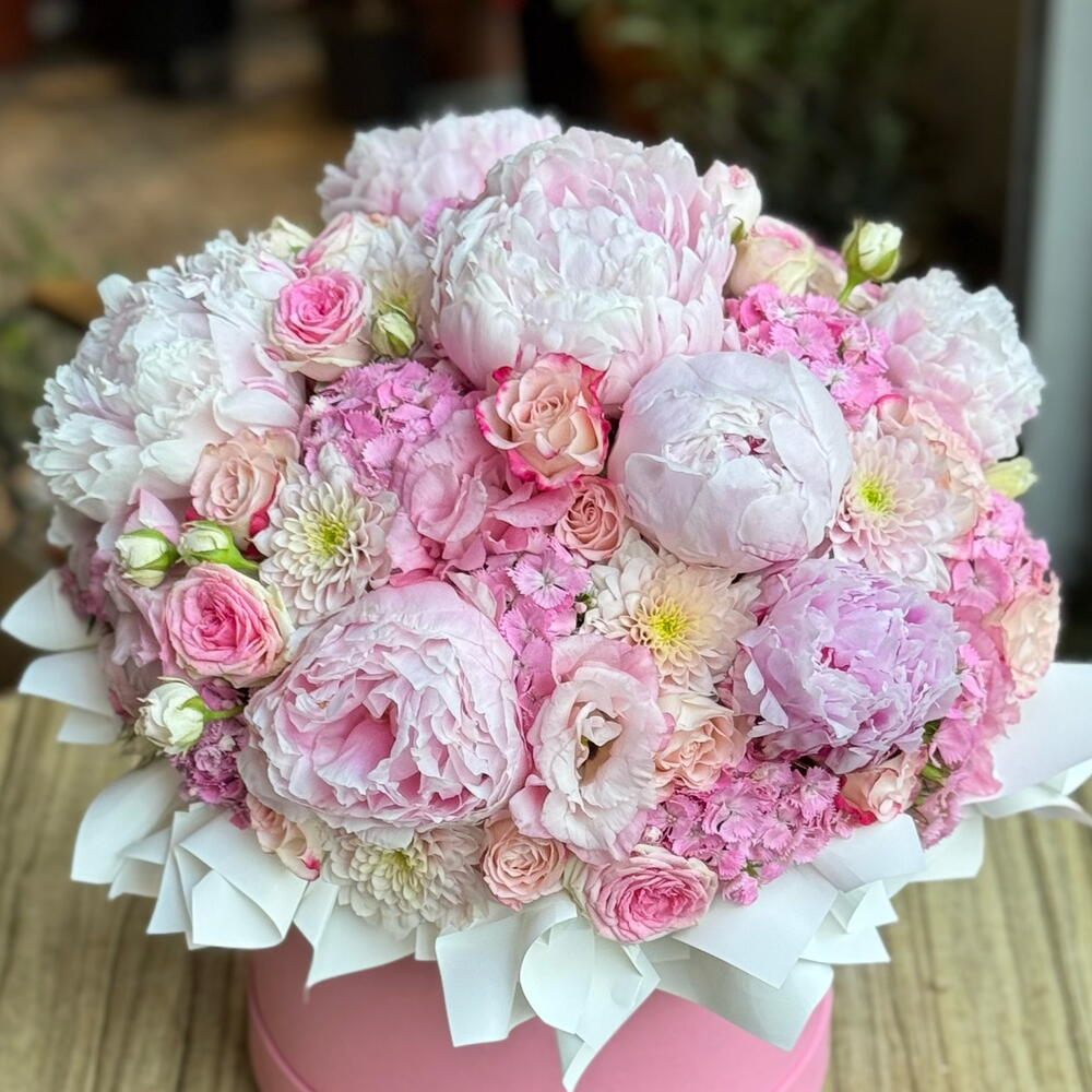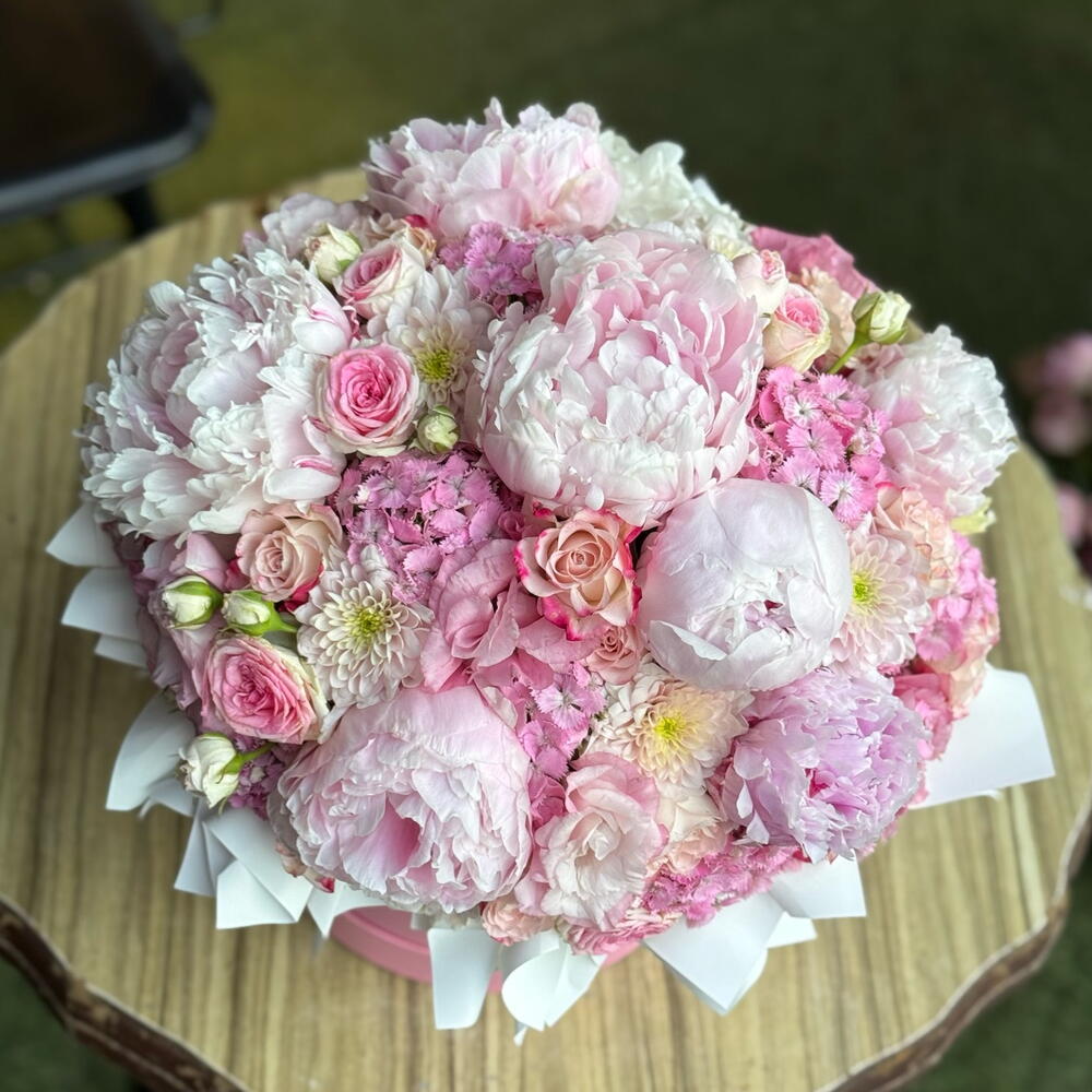 Bu büyüleyici kutuda çiçek aranjmanı, zarif peony (7 adet), büyüleyici spray gül (15 adet), şık kıkrıntı (10 adet) ve çarpıcı lisyantus (7 adet) özelliklerini içerir. Bu çiçekler, göz alıcı bir uyum ve zarafet simgelemektedir. İçindeki her çiçek, cömertçe düşünülmüş ve dikkatle seçilmiştir, bu size hem sofistike hem de rahat bir his verir. Bu büyüleyici kutuda çiçek düzenlemesi, güzelliği ve eşsizliği ifade etmenin en ideal yoludur. Bağış yapmak için muhteşem ve unutulmaz bir seçim olacaktır.
