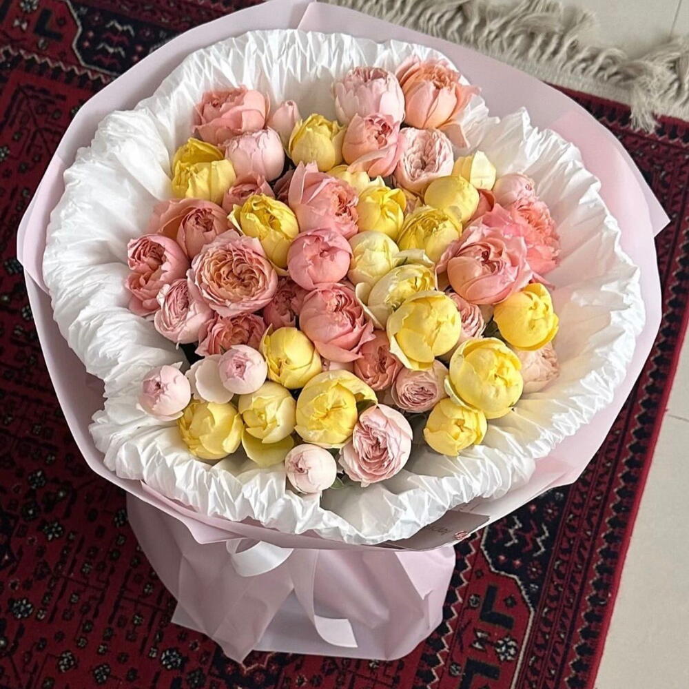 Pembenin zarafeti ile sarının neşesini bir araya getiren bu taze şakayık buketi, bulunduğu ortama anında güneş gibi doğan bir enerji katar. Şakayıkların o kendine has katmerli yapısı ve bu iki rengin uyumu, sevdiklerinizin moralini yükseltmek ve onlara huzur dolu bir tebessüm armağan etmek için harika bir tercihtir. Taze bahar çiçeklerinin en canlı formlarıyla hazırlanan bu aranjman, sevdiklerinize en içten desteğinizi ve yüksek enerjinizi ulaştırmanın en renkli ve zarif yoludur.