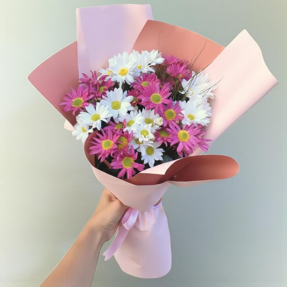 Pembe ve Beyazın Zarif Buluşması Papatya Buketi