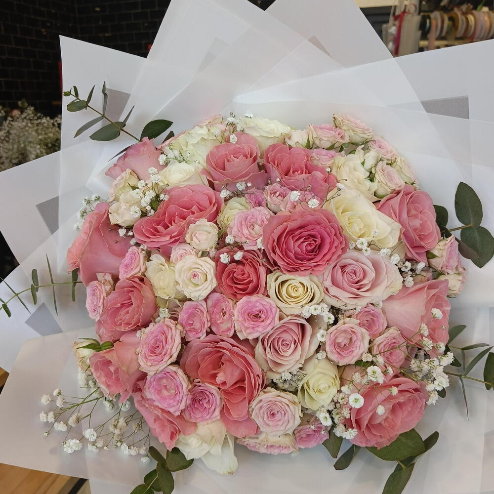 Pembe tonlarının romantik uyumunu taşıyan Pembe Zarafet Buketi, özel anlarınızı unutulmaz kılmak için özenle tasarlandı. Büyük pembe güller, mini pembe sprey güller ve beyaz güllerin uyumu; cipso çiçekleri ve doğal yeşilliklerle tamamlanarak modern ve şık bir görünüm sunar. Şeffaf ve zarif ambalajı sayesinde hem romantik hem de sofistike bir hediye seçeneği olan bu buket; doğum günü, yıldönümü, teşekkür ya da sevginizi ifade etmek istediğiniz her an için mükemmeldir. Sevdiklerinize zarif, taze ve etkileyici bir sürpriz yapmak için Pembe Zarafet Buketi ile duygularınızı en güzel şekilde ifade edin.