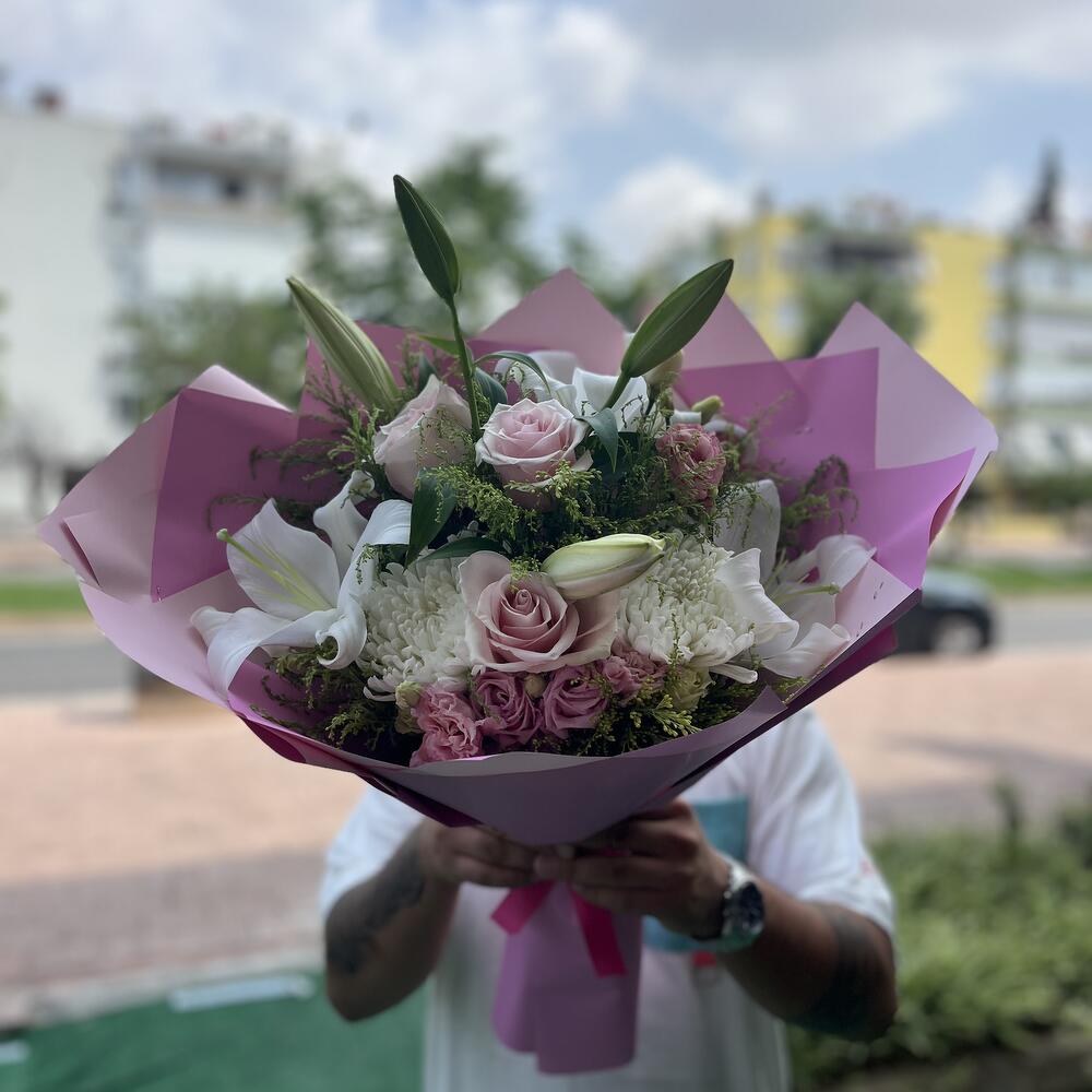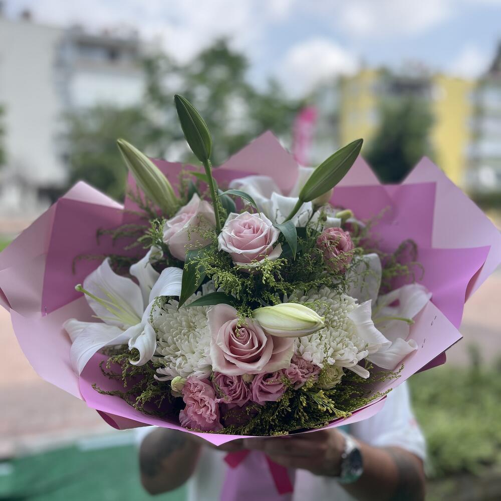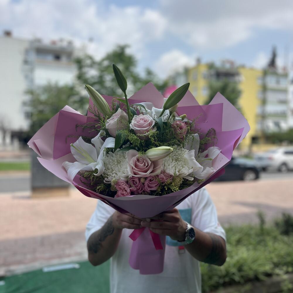 🌸 Pembe Düşler Beyaz Zarafet 🌿 Göz alıcı beyaz Anastasia çiçekleri, pembe güllerin romantizmiyle buluştu. Lilyumların asil dokunuşu ve yeşil yaprakların doğallığıyla zenginleştirilmiş bu özel buket; zarif bir hediye arayanların kalbini fethediyor. Her dokunuşta huzur, her bakışta sevgi… Bu buket; yıldönümleri, doğum günleri ya da “senin için” denilecek her özel an için hazırlandı. 💐 Zarafetin en saf haliyle tanışın. 📍Sipariş ve detaylı bilgi için bizimle iletişime geçin!