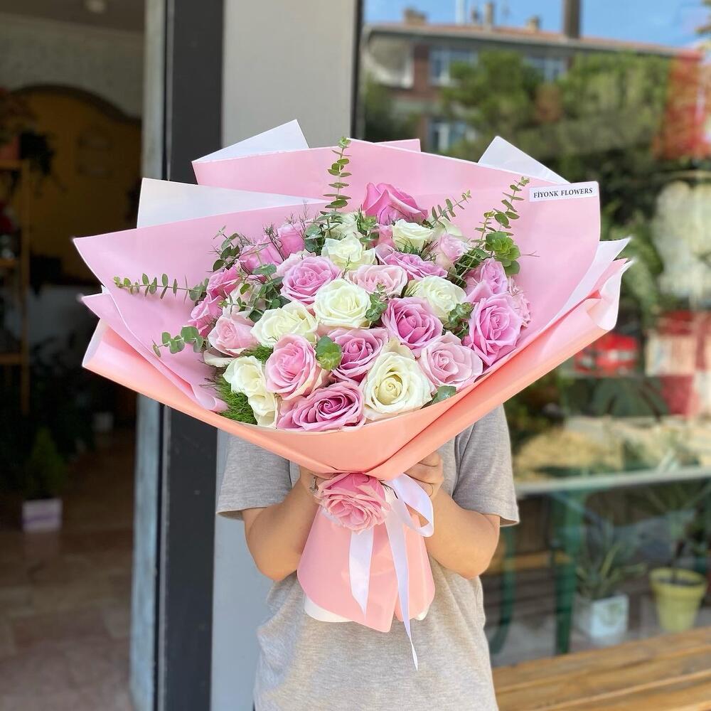 Bu benzersiz mono buket, özenle seçilmiş 20 adet beyaz ve 20 adet pembe gül ile tasarlanmıştır. Her bir gül, zarafeti ve sofistike eleganlığı ile dikkat çeker. Bu çarpıcı buketle sevdiklerinizi etkileyin ve her anı özel kılın. Bu güllerin canlılığı ve tazeliği, sevdiklerinize olan duygularınızı en iyi şekilde ifade edecektir.