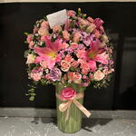 Bu zarif ve özel tasarım, 3 adet pembe zambak, 50 adet karışık pembe çiçek ve 10 adet pembe gül ile oluşturulmuştur. Bu çiçek aranjmanı sadece göz alıcı değildir, aynı zamanda sahibine özel bir his verir. Özenle seçilmiş ve hassas bir şekilde düzenlenmiş bu çiçekler, sizin ya da sevdiklerinizin gününü aydınlatabilir. Her bir çiçek, estetik güzelliği ve birbirinden farklı tonlarıyla bir sanat eserini anımsatır. Özel bir gün için ideal bir hediye olan bu çiçek aranjmanı, tüm önemli anılarınızı çok daha unutulmaz kılacak.