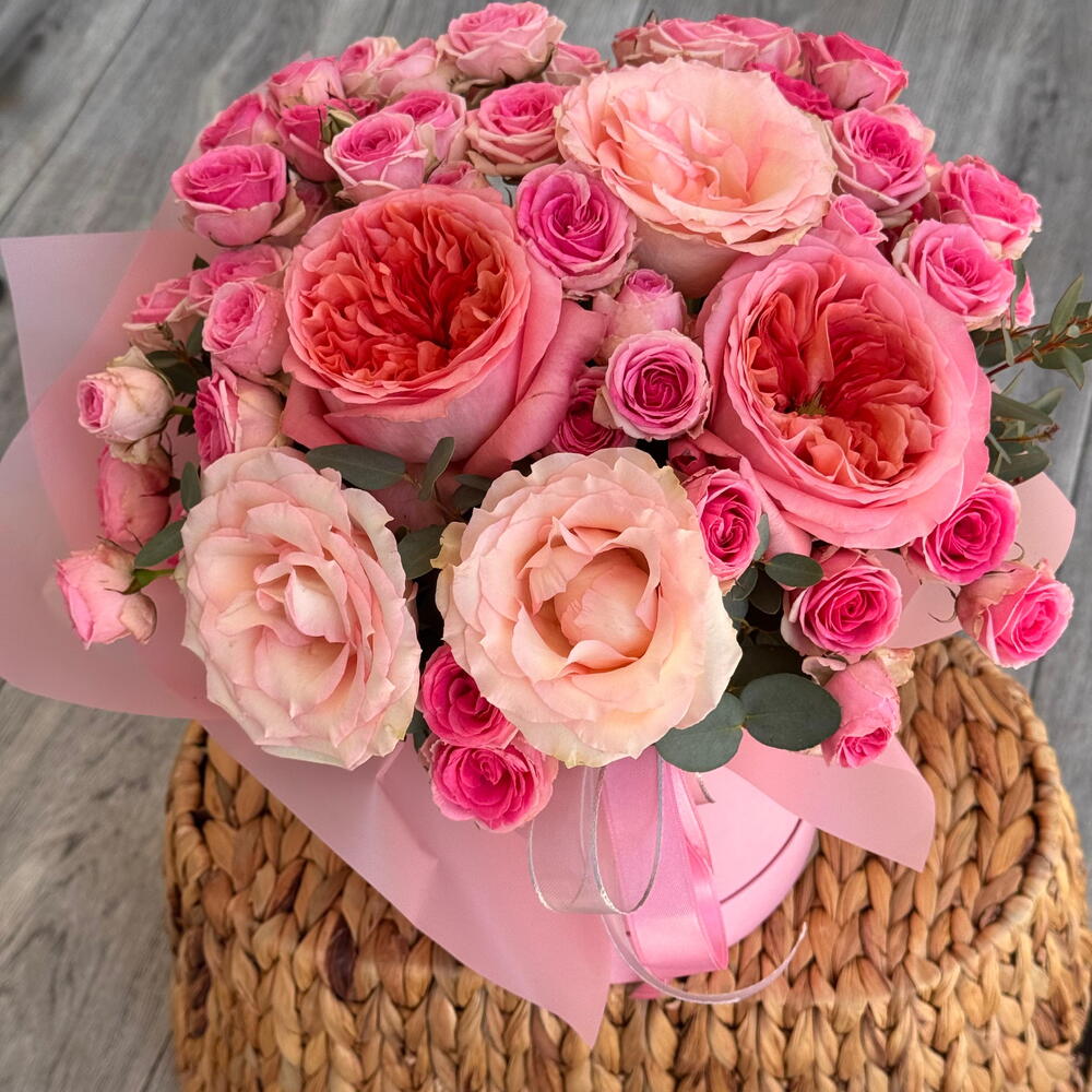 Çalı gülü - 7 adet Okaliptüs - 2 adet Tek başlı gül - 3 adet gül ekspresyon peoni şeklinde - 2 adet