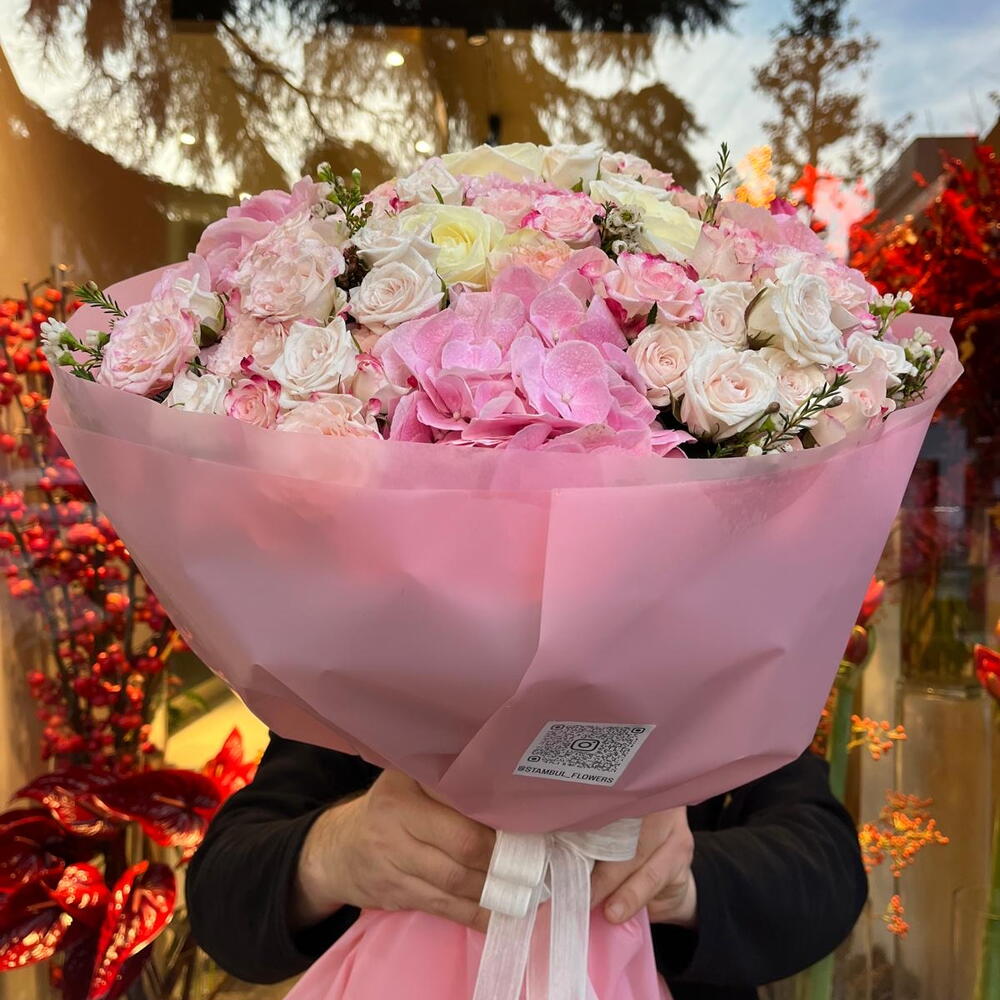 Spray rose - 15 adet Hydrangea - 4 adet Lisianthus - 5 adet rose - 7 adet