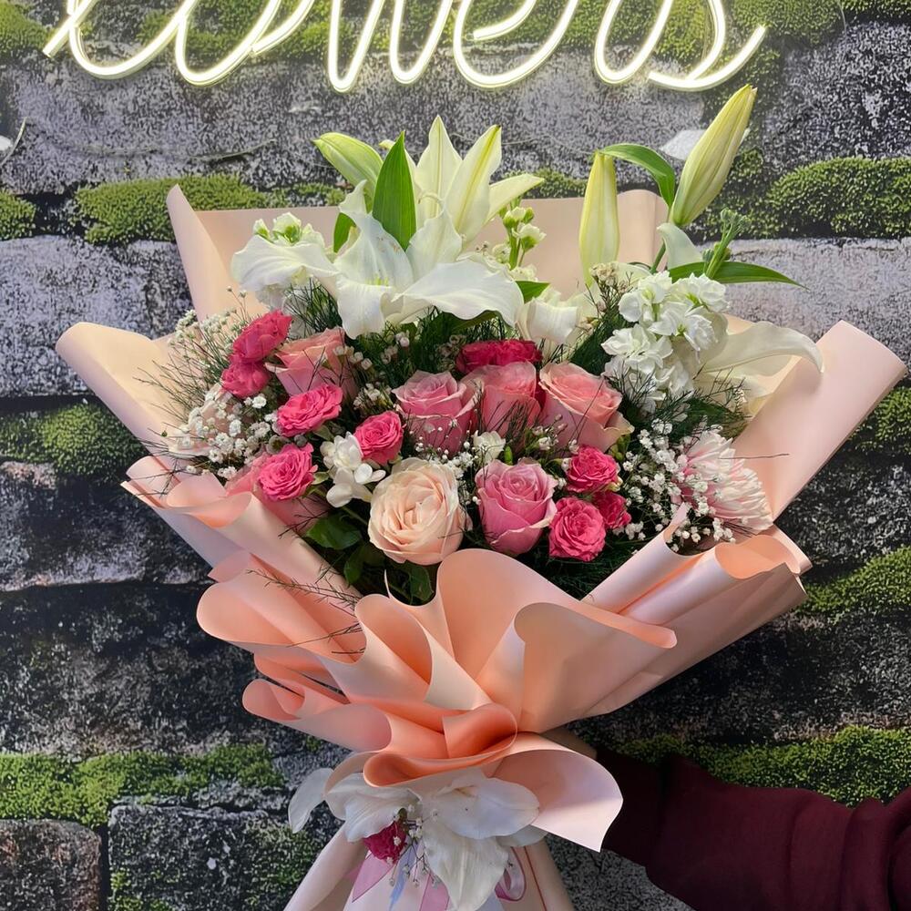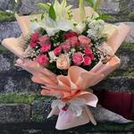 PİNKLOVE LİLYUM İTHAL PEMBE GÜL BUKETİ