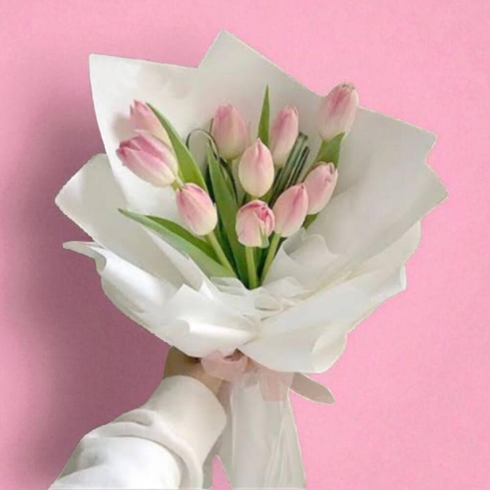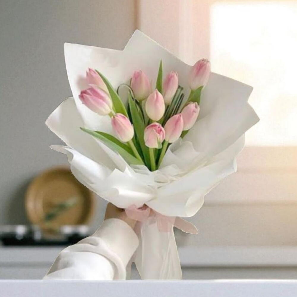 Powder Pink tulips bouquet10 - pudra pembe lale