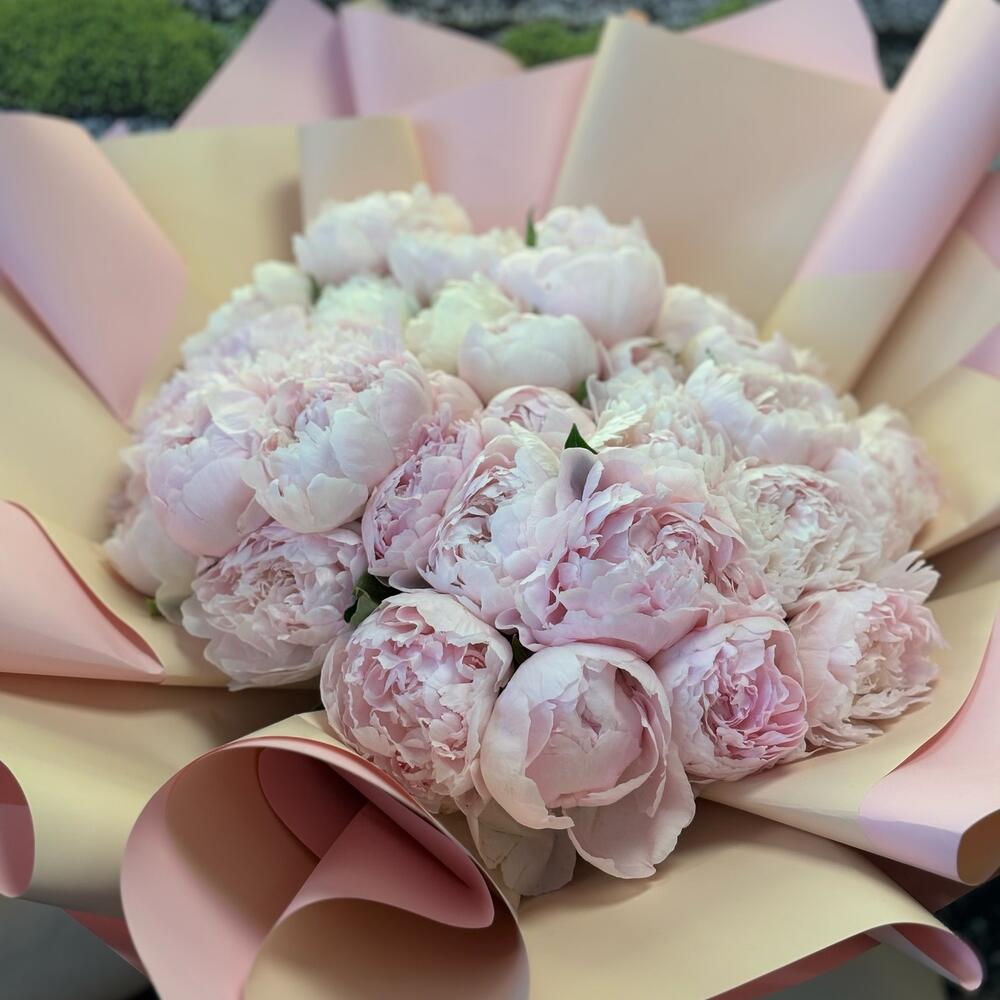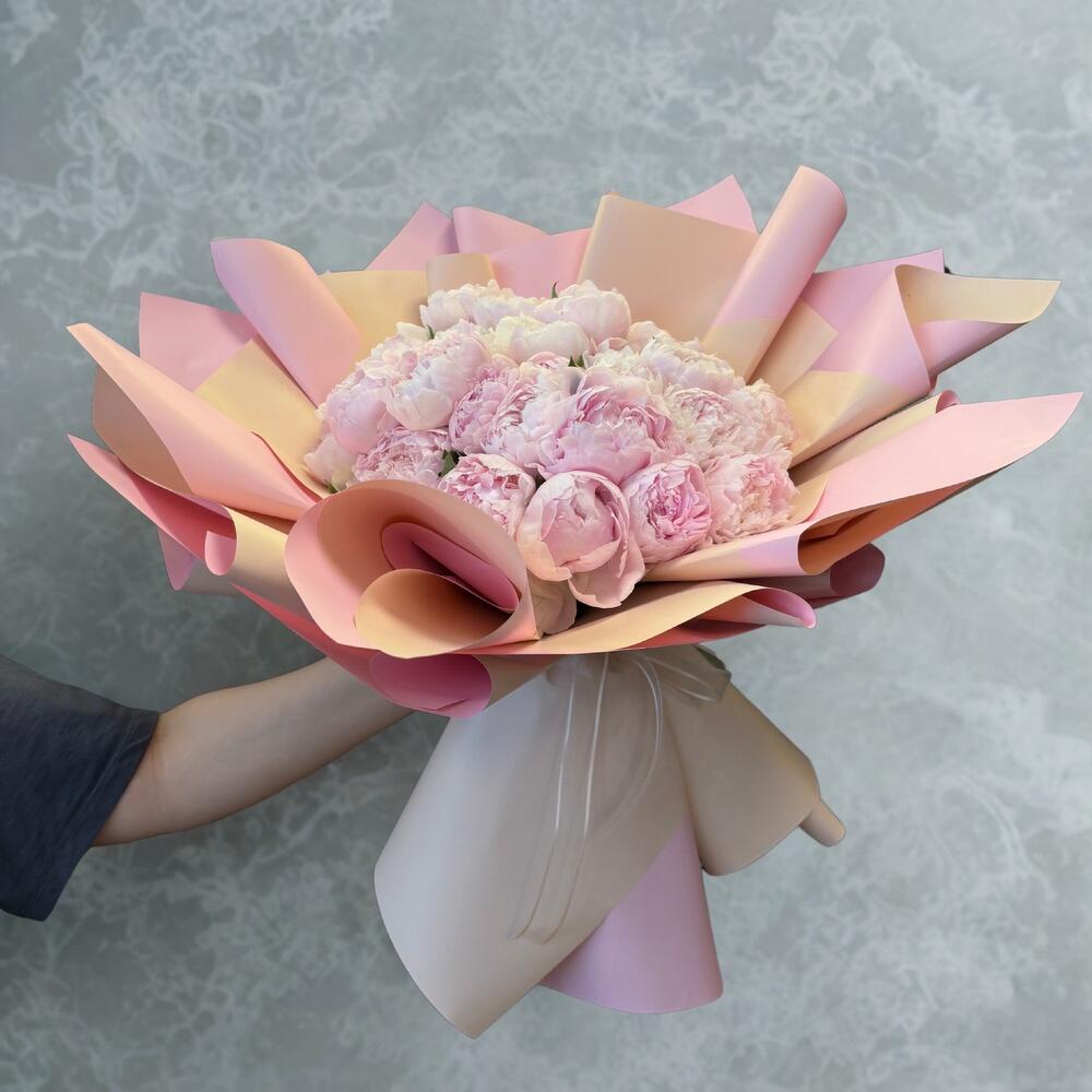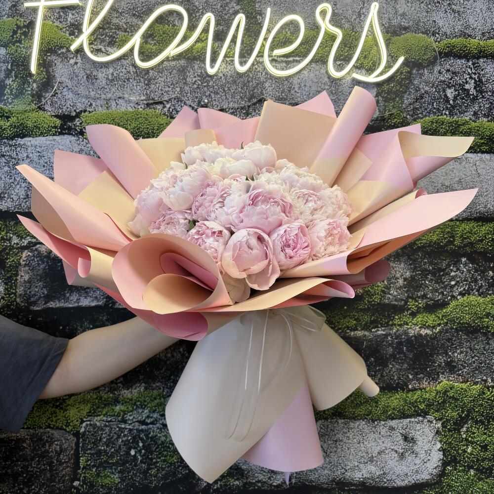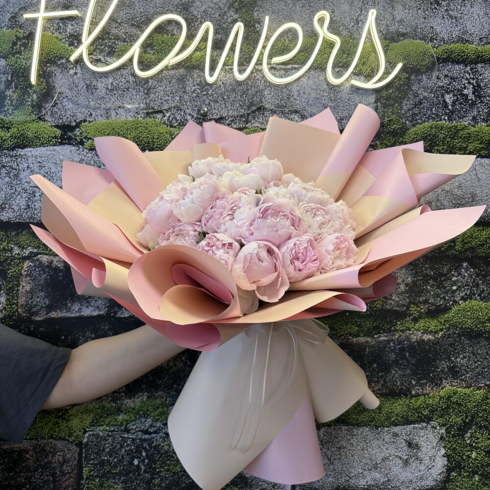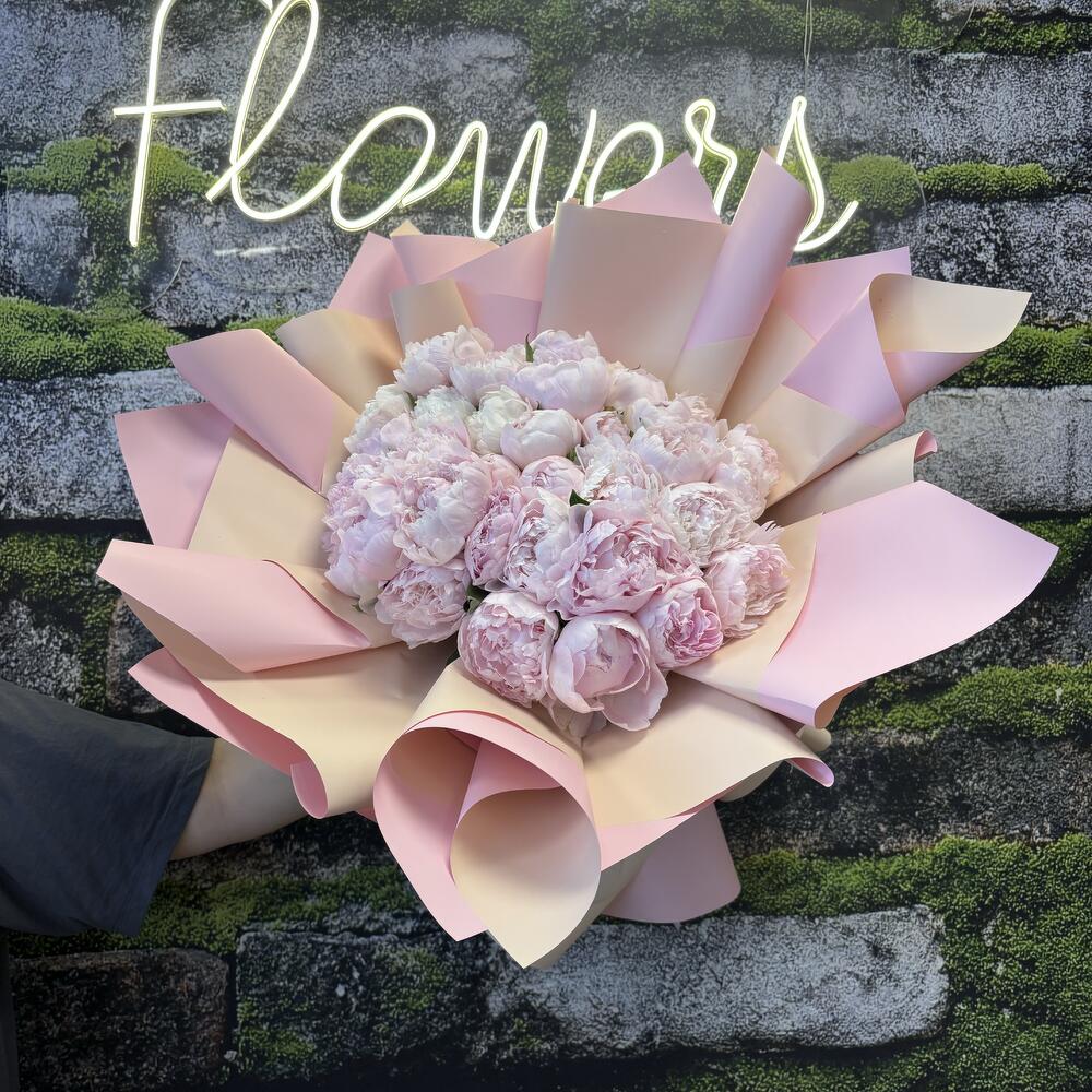 “25 adet ithal pembe şakayığın zarafetiyle hazırlanan bu büyük ve sade buket, özel anlara romantik ve sofistike bir dokunuş katmak isteyenler için tasarlandı.”