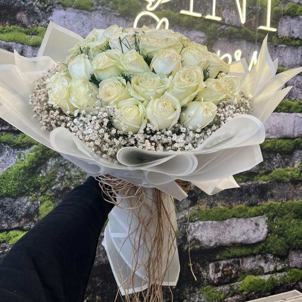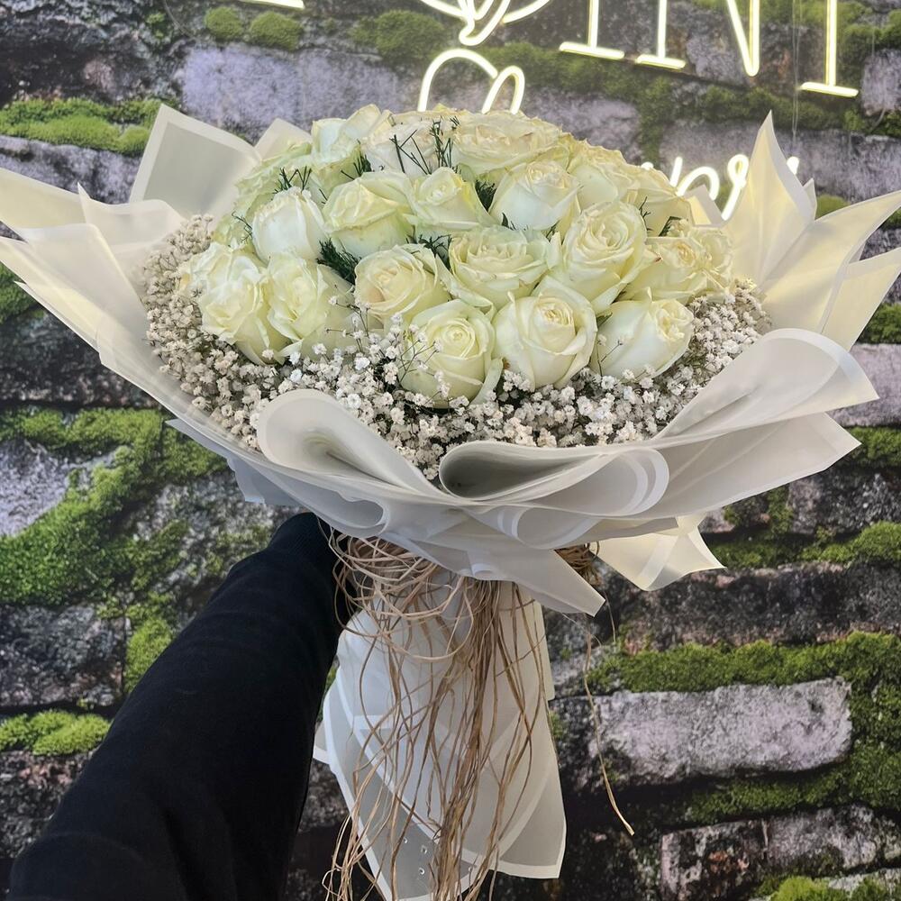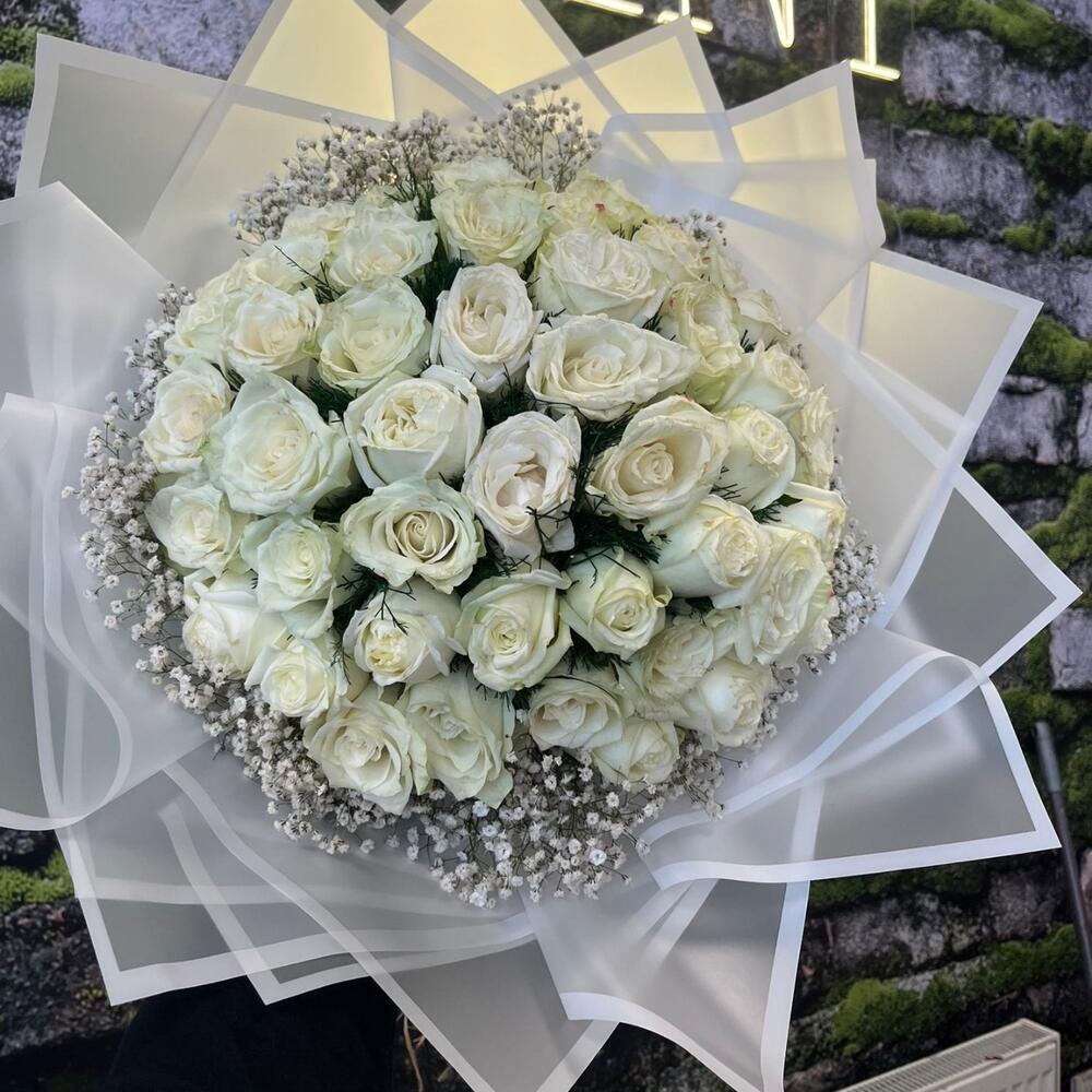 Saflığın, zarafetin ve sonsuz sevginin en zarif hali 🤍 41 adet taze beyaz gül ile özenle hazırlanmış bu özel buket; sade ama etkileyici duruşuyla her özel ana anlam katar 🌸 Bembeyaz güllerin etrafını saran cipso ve yeşillikler, bukete masumiyet ve doğallık katarken, şık beyaz ambalajı zarif bir hediye görünümü oluşturur 🎀 Düğün, nişan, doğum günü ya da özel bir kutlama için mükemmel bir seçim olan Beyaz Gül Buketi, Royal Flowers kalitesiyle taptaze şekilde teslim edilir 🌹✨ Sevginizi en zarif şekilde ifade etmek istiyorsanız bu beyaz gül buketi, duygularınızı sade ama unutulmaz biçimde anlatacak 💫