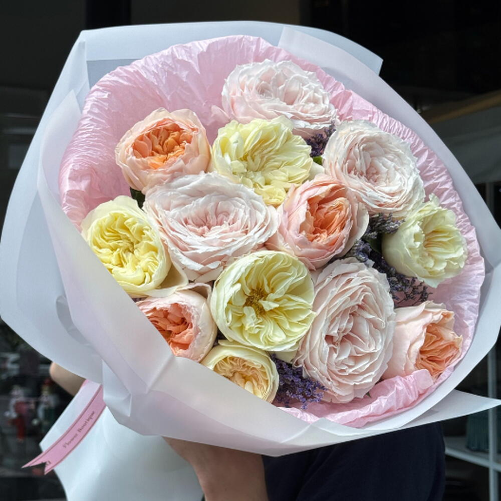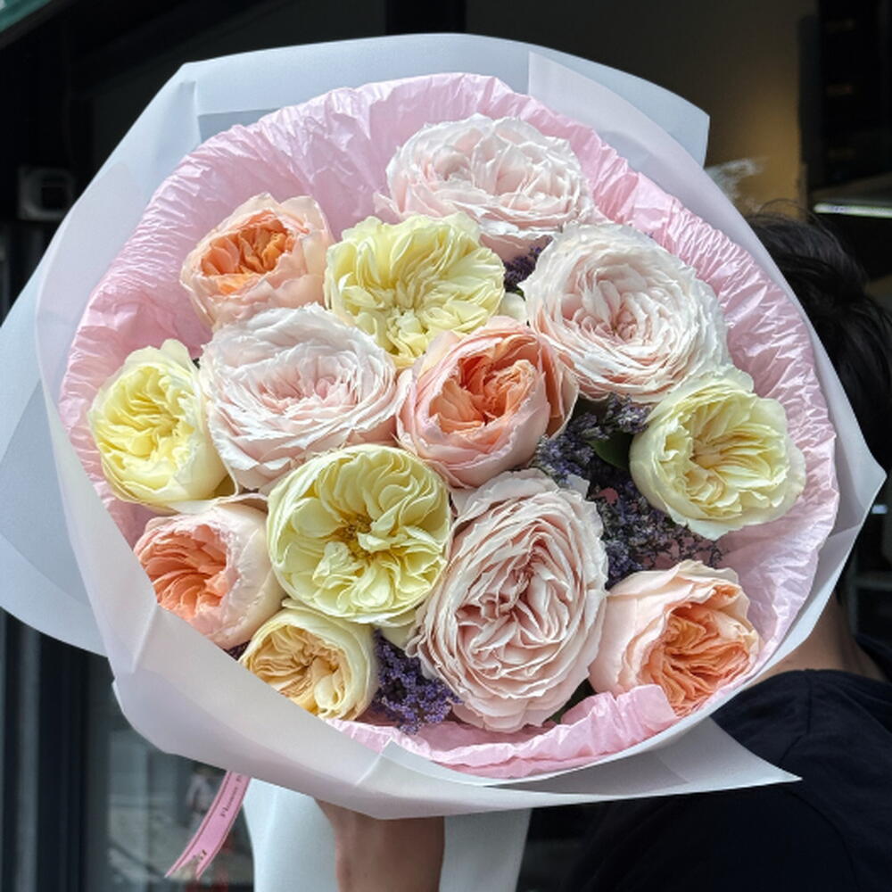 Bu muhteşem çiçek buketi, 4 adet zarif David Austin Juliet gülleri, 4 adet egzotik Wabara Tsumigi gülleri ve 5 adet ihtişamlı özel Hollanda gülleri ile süslenmiştir. Her bir çiçek, tamamen doğal ve kaliteli materyallerden özenle seçilmiş ve ustalıklı çiçekçilerimiz tarafından dikkatlice düzenlenmiştir. İster sevdiklerinize hediye etmek için, isterse kendi evinizde doğanın güzelliğini yakalamak için bu çekici buket mükemmel bir seçenek olacaktır.