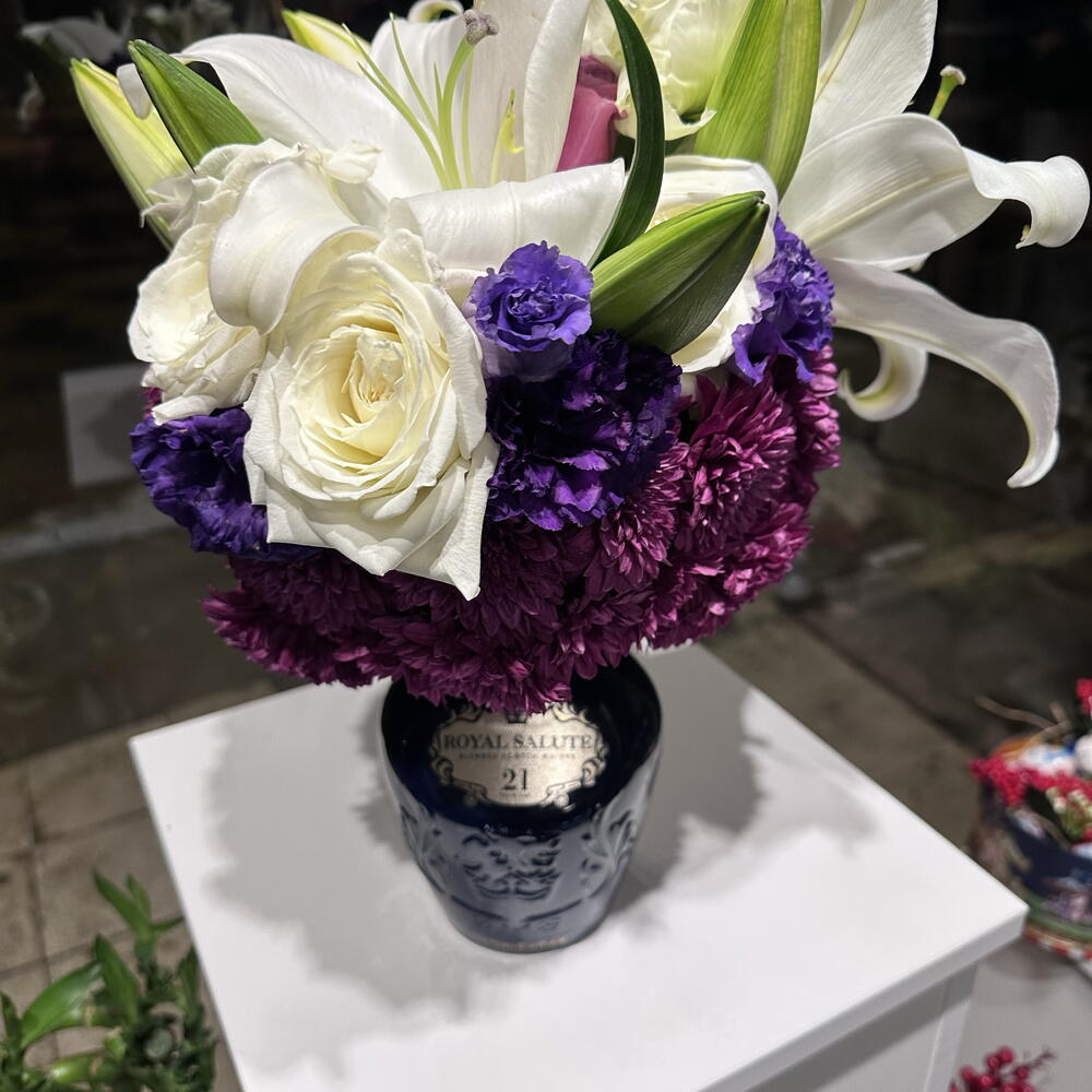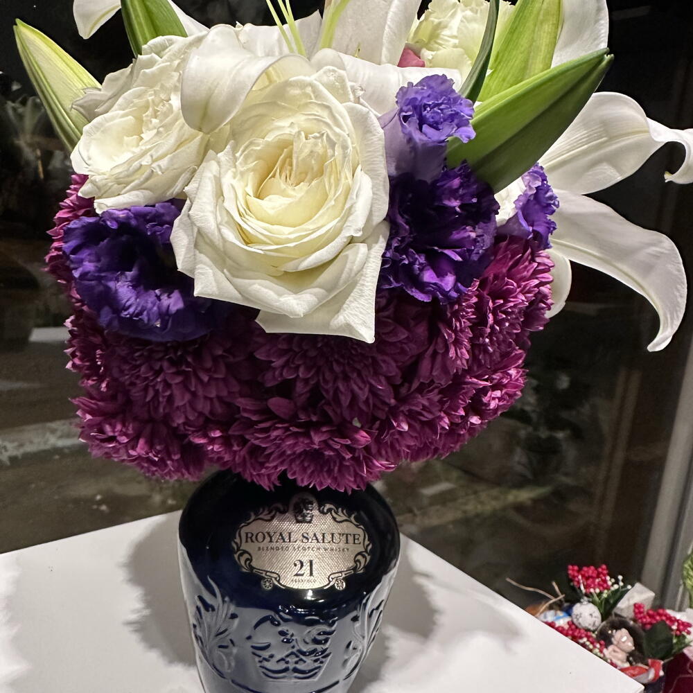 beyaz gül - 8 adet cazablancas - 3 adet kasımpatı pembe - 40 adet royal salute - 1 adet