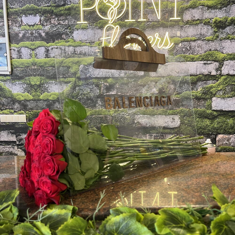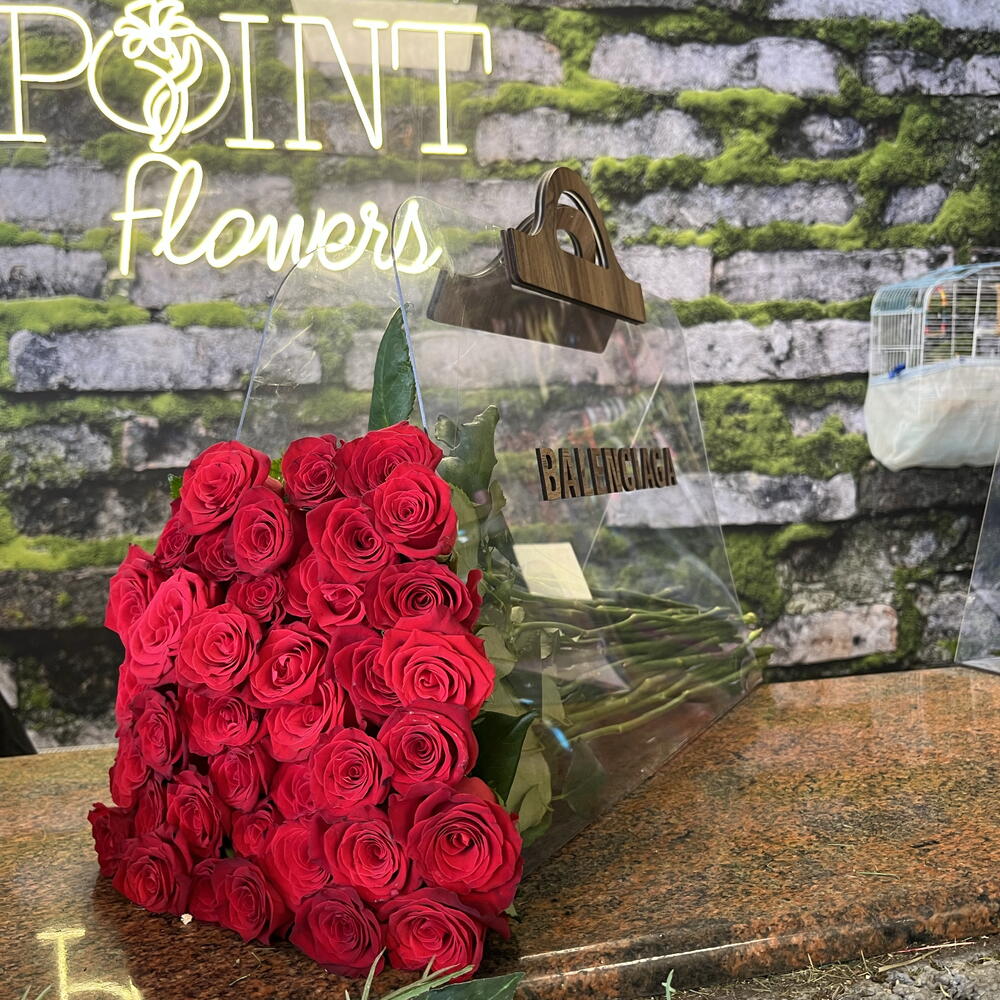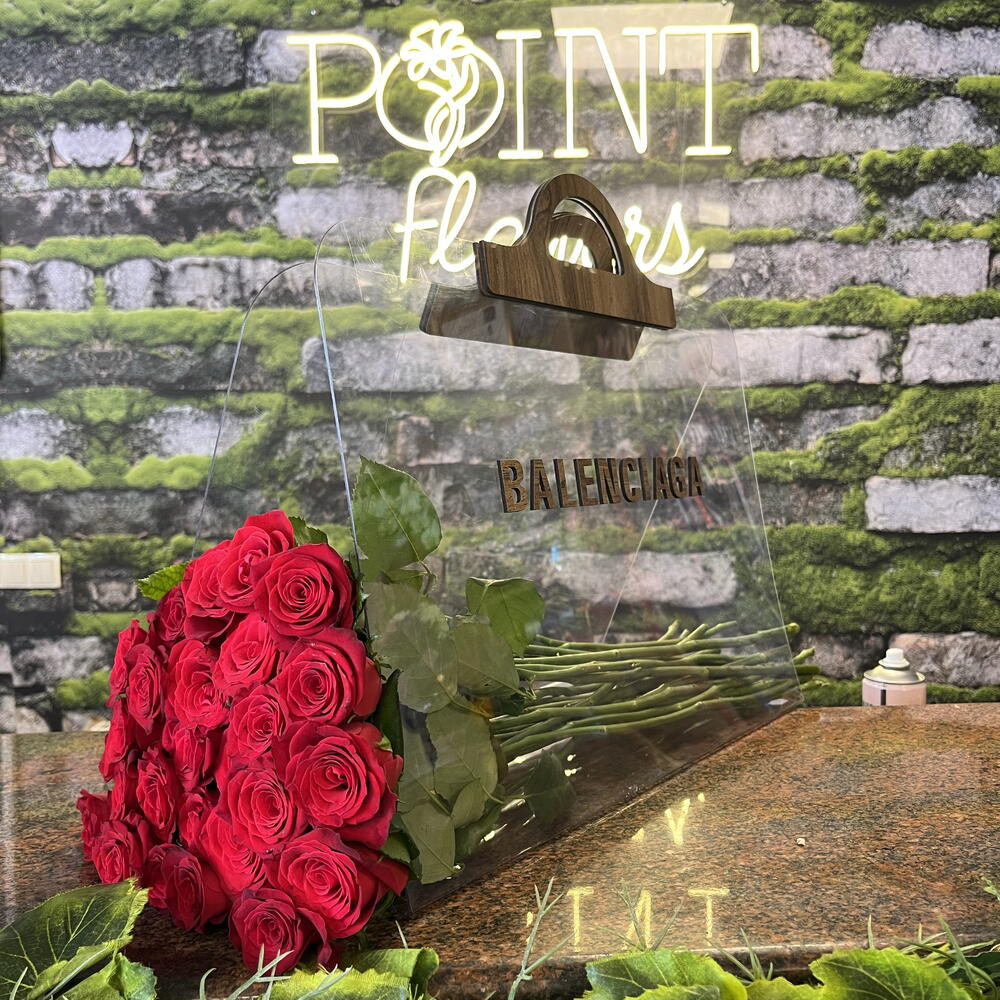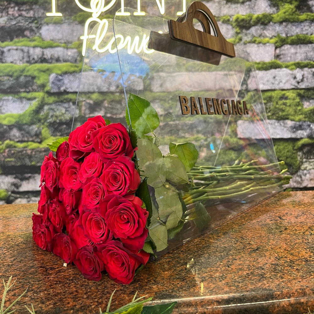 kırmızı gül - 51 adet balenciaga çanta - 1 adet