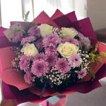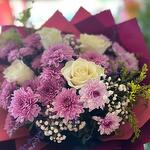 Bu özel tasarım çiçek aranjmanı, muhteşem 40 adet mor krizantem, 4 adet beyaz gül, zarif ve kokulu 12 adet lavanta (kuru çiçek), 2 adet solidaster, ve 5 adet cipso kullanılarak oluşturulmuştur. Çiçeklerimiz doğadan ilham alarak ve el işçiliği kullanılarak aranjman haline getirilmiştir. Bu güzel kompozisyon, her türlü özel anınızı kutlamak ve sevdiklerinize hediye etmek için mükemmel bir seçimdir.