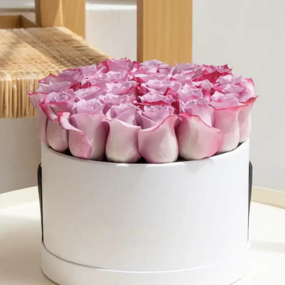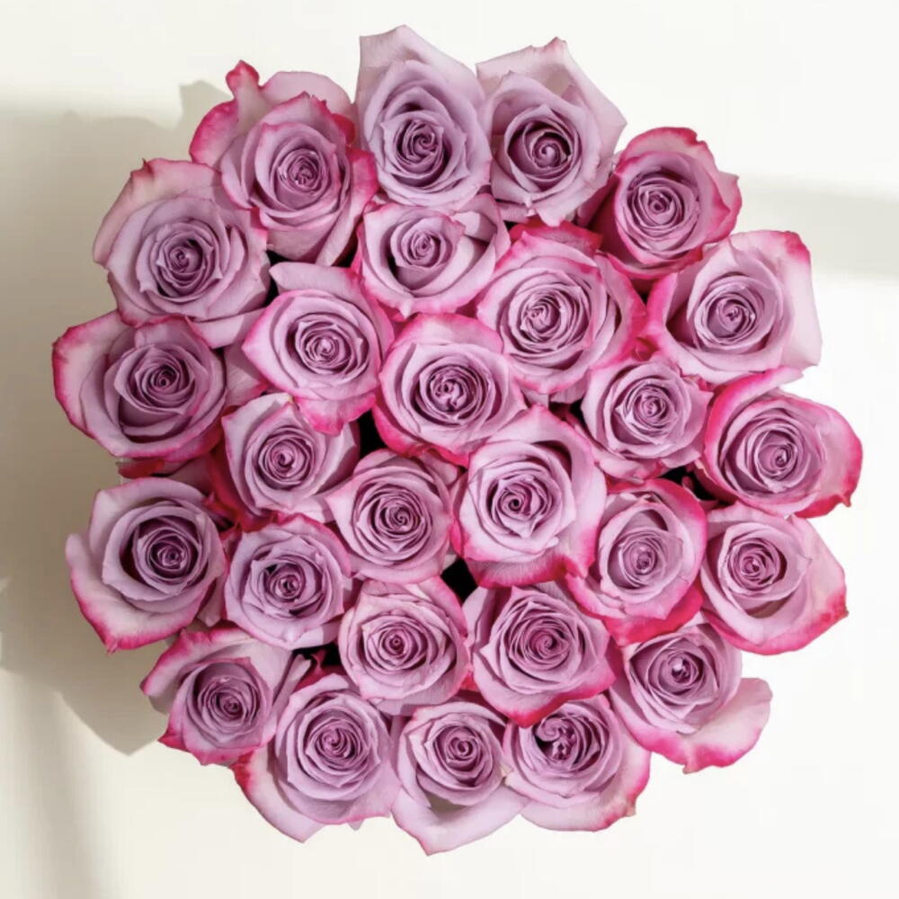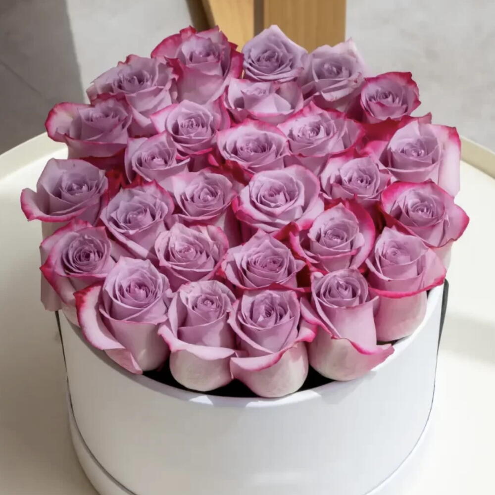 Purple roses box arrangement