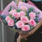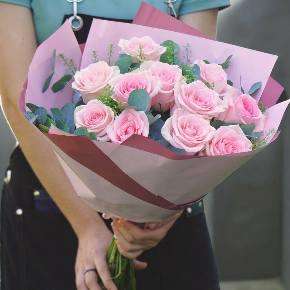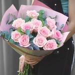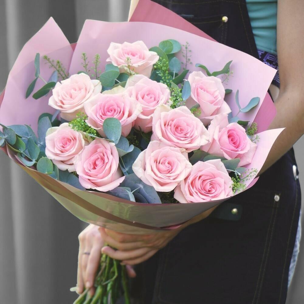 Bu yumuşak ve romantik, narin pembe güllerden oluşan buket şefkat ve cazibenin somutlaşmış hâlidir. Sevgi, minnettarlık veya hayranlığı ifade etmek için mükemmeldir; doğum günü, yıldönümü ya da sadece birinin gününü aydınlatmak için ideal bir hediyedir. Gür okaliptüs ve canlı yeşilliklerle vurgulanmış bu aranjman hem zarif hem de modern bir görünüme sahiptir. Buketinizi taze tutmak için temiz, serin suya koyun, saplarını her iki günde bir eğik olarak kesin ve doğrudan güneş ışığından ya da cereyandan kaçının.