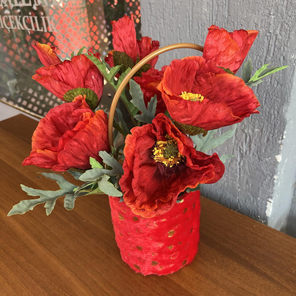 Kadife kutuda premium yapay gelincik 🌺 Canlı rengi, gerçekçi dokusuyla solmayan, zamansız bir aranjman. Özel anlar için kalıcı bir hediye.