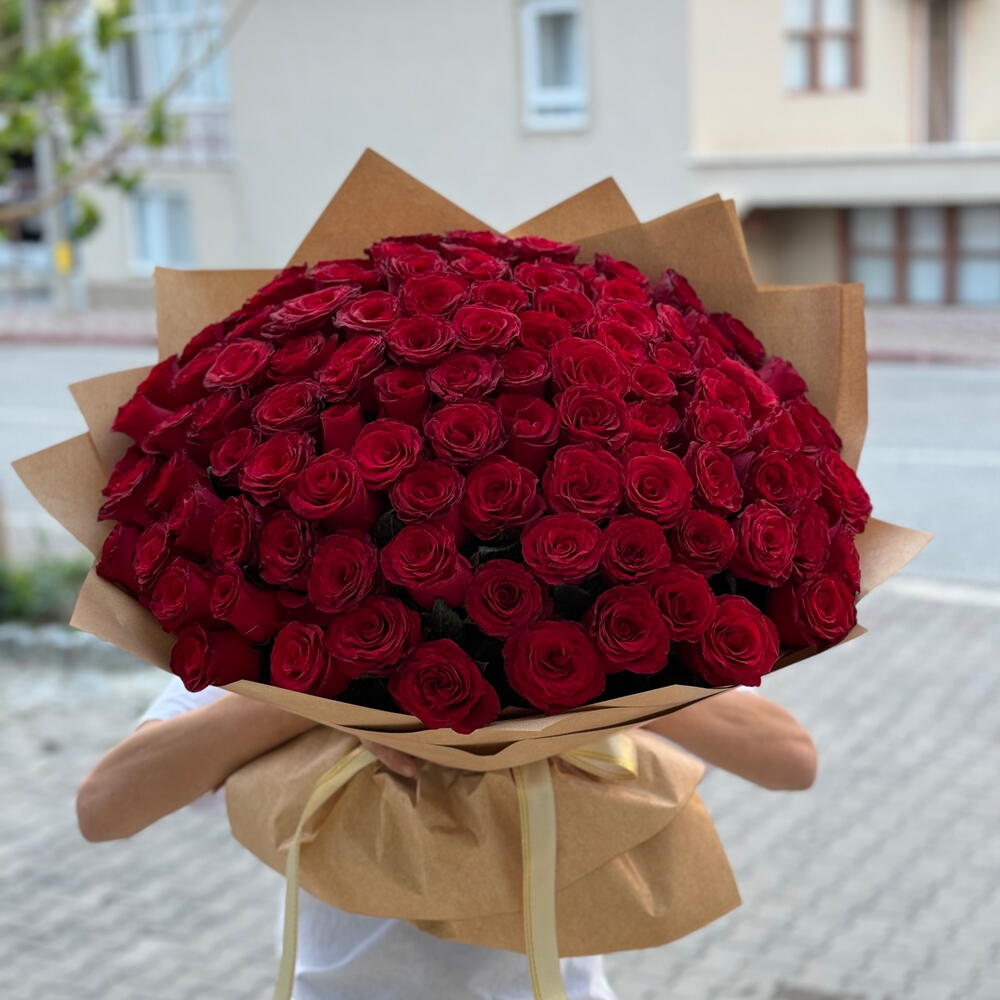 Bu olağanüstü çiçek buketi, 101 adet kırmızı gül ile doludur. Bu zarif ve klasik seçim, aşk ve tutkuyu sembolize eden kırmızı güllerin göz alıcı görüntüsüyle herhangi bir odayı büyüler. Sevdikleriniz için mükemmel bir sürpriz veya özel bir günü kutlamak için idealdir. Bu çiçek buketi, eksiksiz bir ev dekoru oluşturmanın yanı sıra kalpten kalbe giden yolunuzu da aydınlatır.