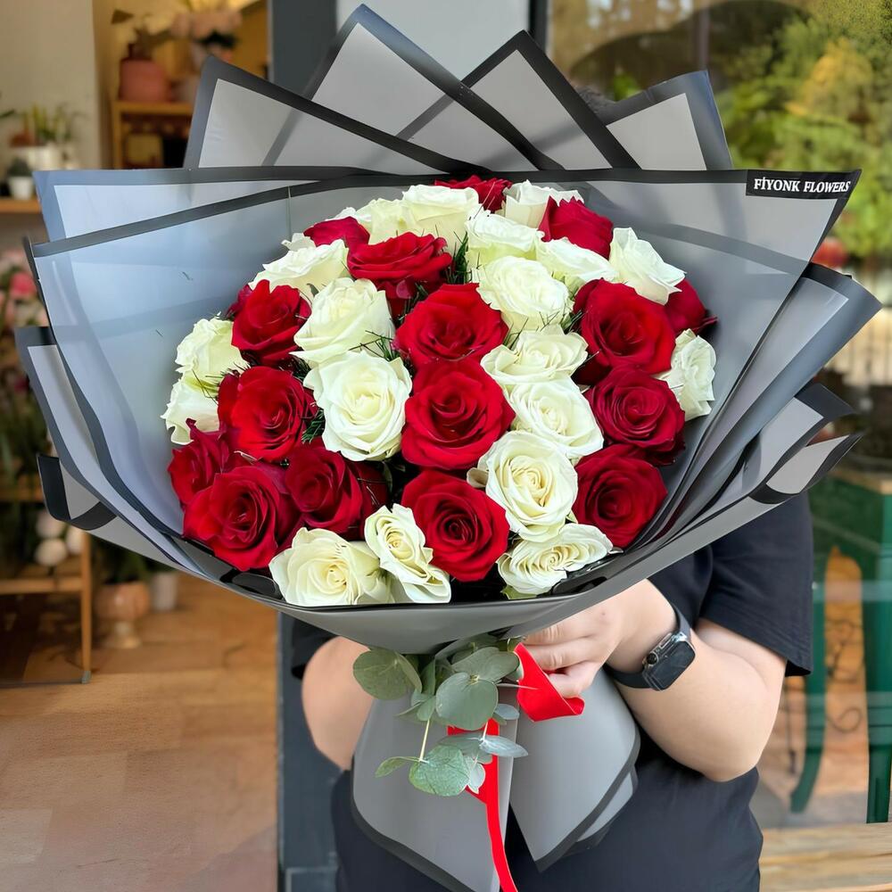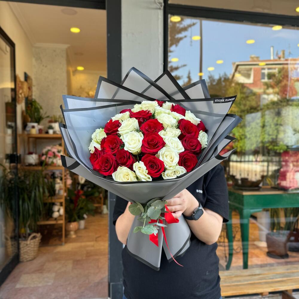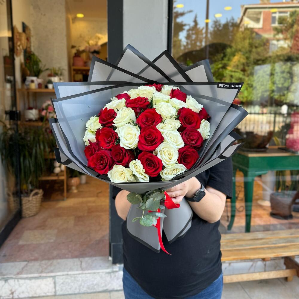 beyaz gül - 25 adet gül kırmızı - 25 adet