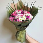 Renkli Bahar Çiçek Buketi, doğanın taptaze enerjisini ve baharın neşesini yansıtan muhteşem bir aranjmandır. Beyaz papatyaların saflığı, mor papatyaların canlılığı, lila güllerin romantik dokusu ve Hüsnüyusuf çiçeklerinin zarif detayları bir araya gelerek göz alıcı bir buket oluşturuyor. Yeşil tonlardaki zarif ambalajı ve şık kurdele süslemesiyle tamamlanan bu buket, sevdiklerinize baharın taptaze esintisini sunmanın en güzel yoludur. Doğum günleri, yıldönümleri, anneler günü ve içten bir teşekkür için ideal bir çiçek aranjmanıdır. Bakım Önerileri: Buketinizin tazeliğini koruyabilmesi için serin ve doğrudan güneş ışığından uzak bir ortamda muhafaza edilmesi gerekmektedir. Çiçeklerin bulunduğu su her gün değiştirilerek sap uçları hafifçe kesilmelidir. Papatyalar ve lila güller narin yapıda olduklarından, aşırı sıcak veya rüzgarlı ortamlardan kaçınılmalıdır. Buketin bulunduğu ortamın hava sirkülasyonu iyi sağlanmalı ve çiçeklerin ömrünü uzatmak için haftada bir kez besleyici çiçek gıdası eklenmesi önerilir.