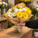 Renkli papatyalarla bezenmiş bu özel çiçek buketi, evinizin veya ofisinizin ambiansını hemen yükseltecek. 9 adet renkli papatya, 5 adet solidago ve 5 adet ruscus sayesinde bu çiçek buketi, doğanın tüm güzelliğini ve çeşitliliğini yansıtıyor. Kusursuz bir hediye veya mükemmel bir dekorasyon parçası olabilecek bu çiçek buketi, her türlü mekana doğal bir dokunuş katıyor.